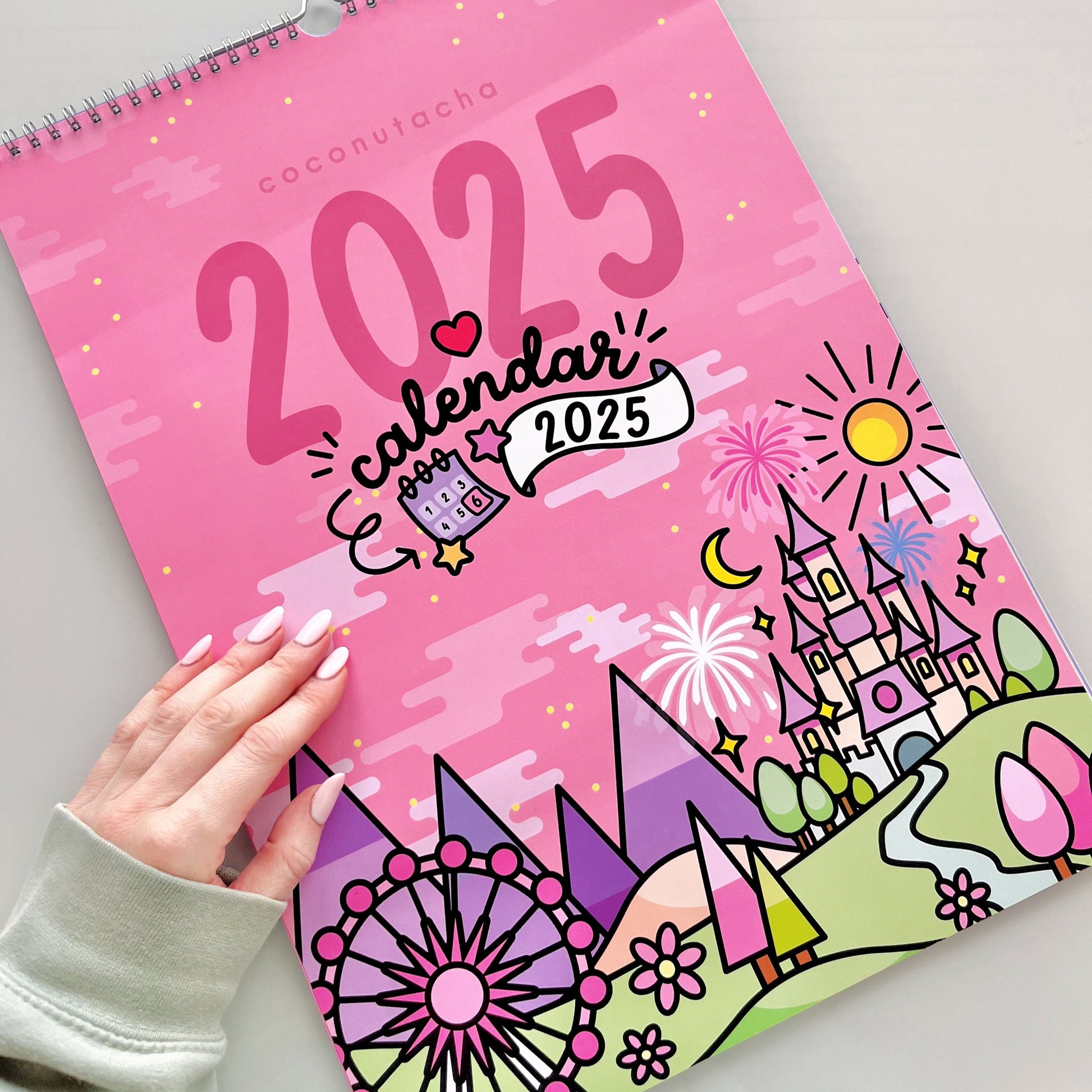 Introducing the first ever CoconuTacha wall calendar for 2025! Featuring 12 different illustrations to represent each month. Map out your year and add a pop of bright colour and cuteness to your office or studio!