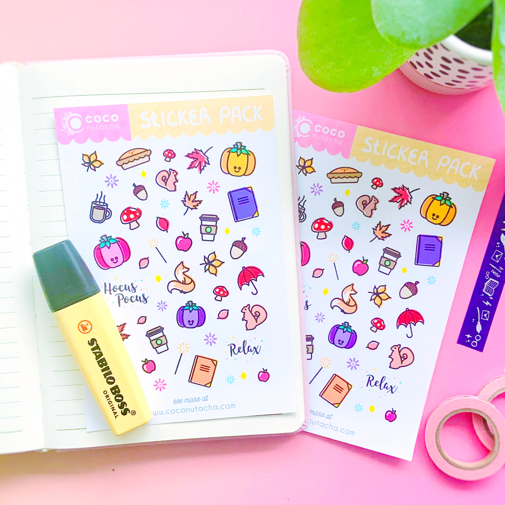 These magical, autumn-inspired stickers are sure to bring some colour to any planner! Inspired by the colour of fall, magic and nature. Use them inside your planner, for packaging, scrap-booking or to jazz up your wrapping paper.