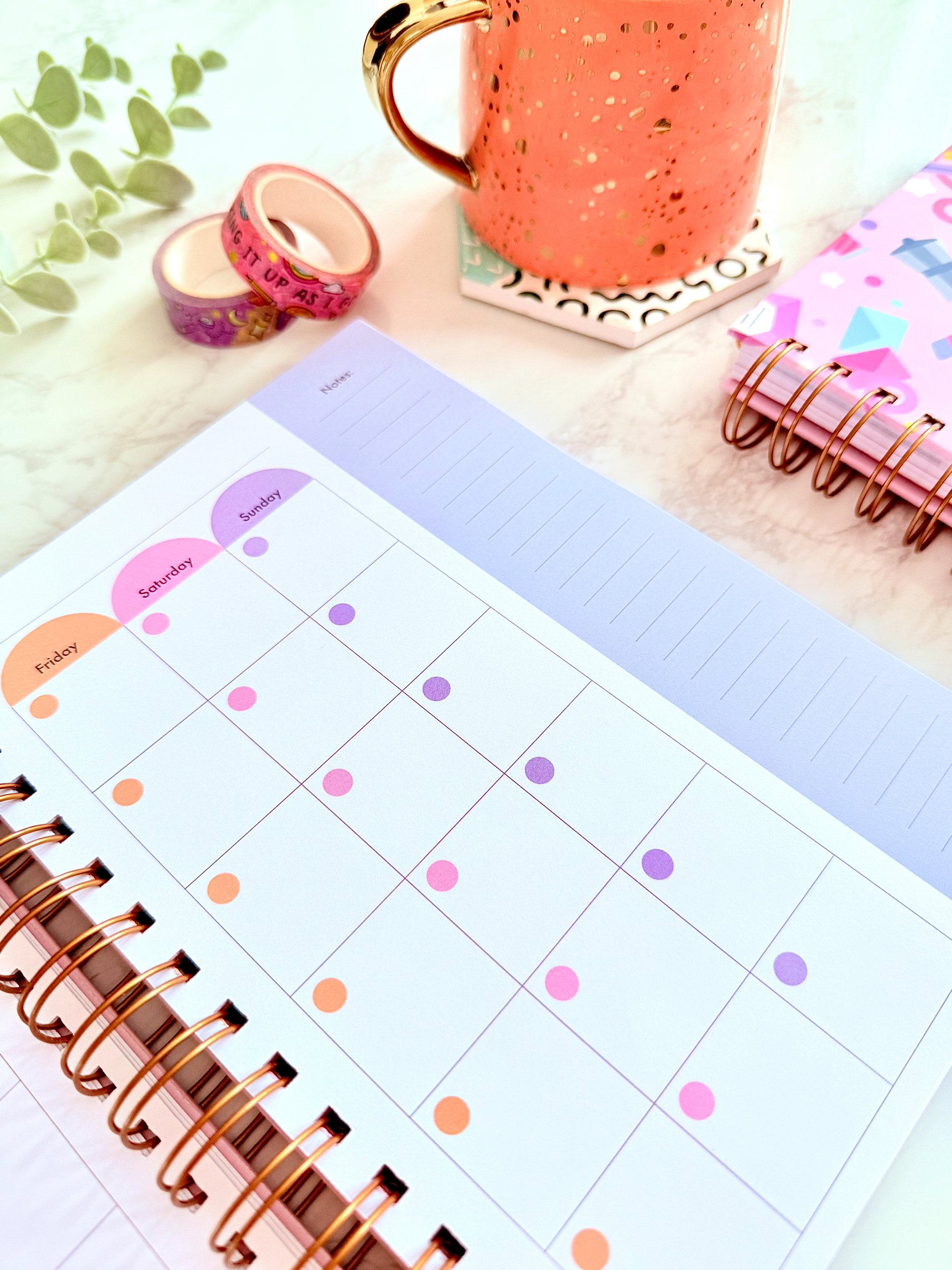 One clean spread to map your month - events, appointments, deadlines, birthdays, holidays and whatever life throws at you. Think of it as like a command centre for your brain - but cute and colourful.