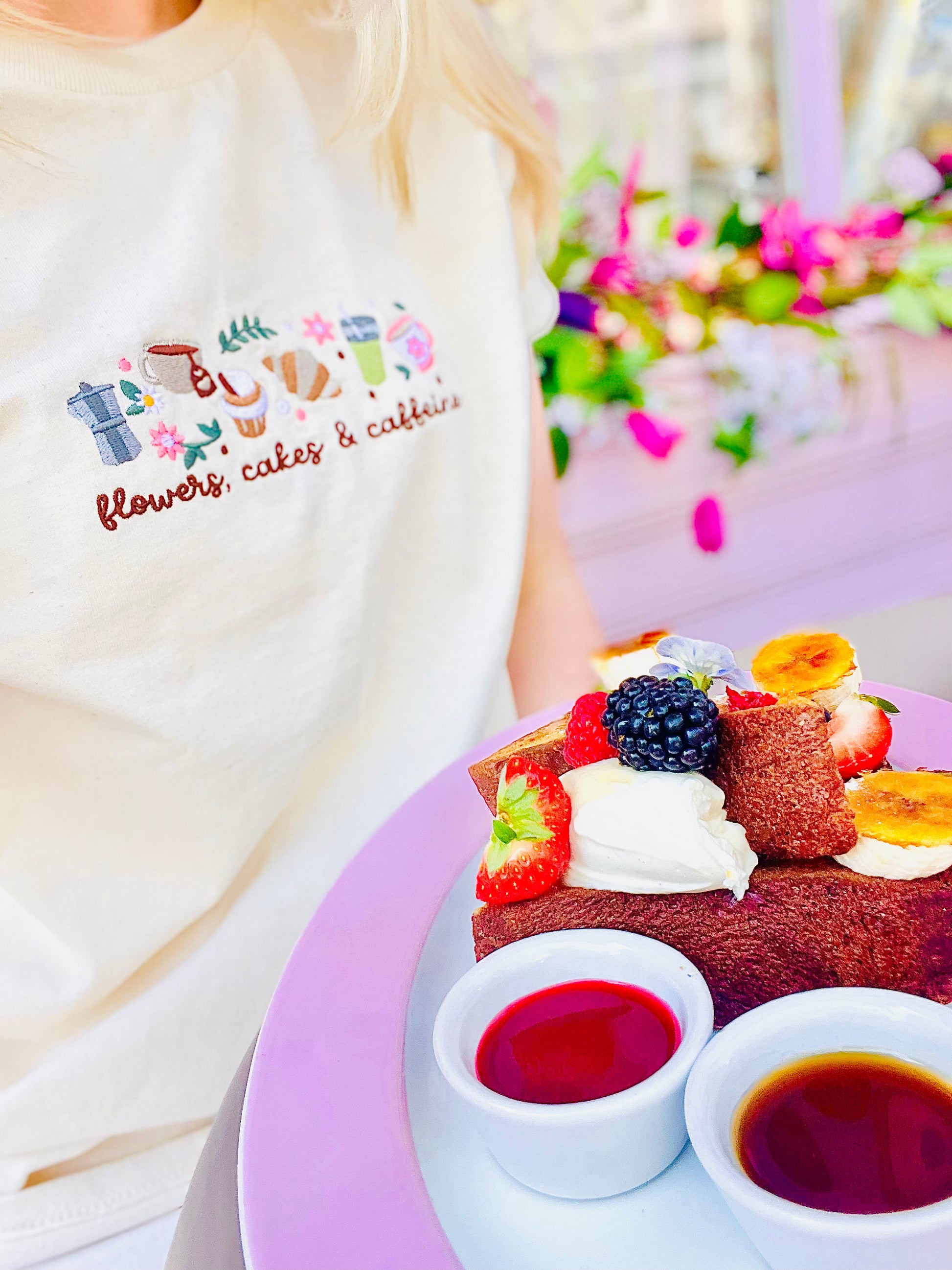 Flowers, Cakes & Caffeine Embroidered Longline T-Shirt – Spring & Summer Staple 🌸