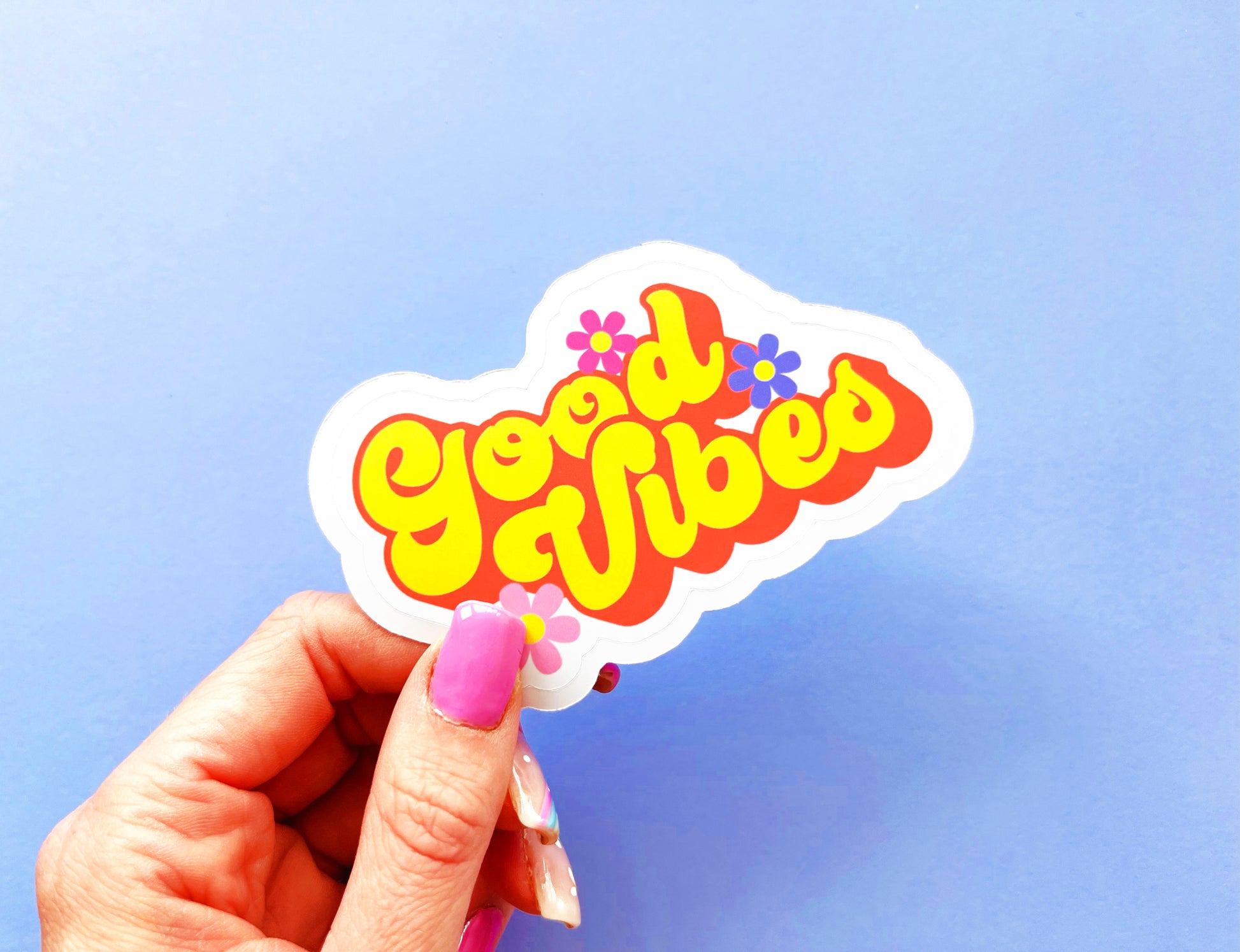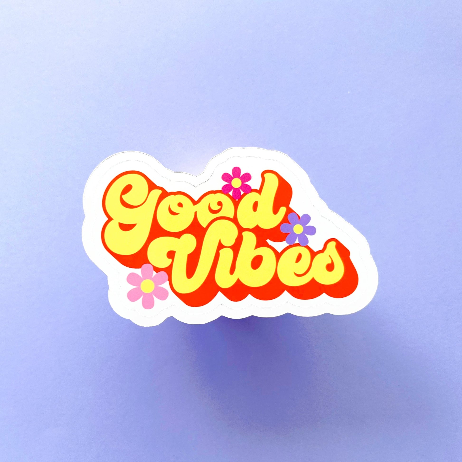 Good vibes only with this happy, peppy, 70's inspired sticker! Stick it on your laptop, tablet device or water bottle to add a splash of sunshine to your day.