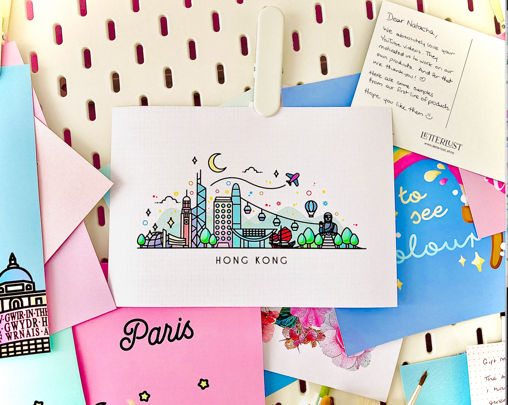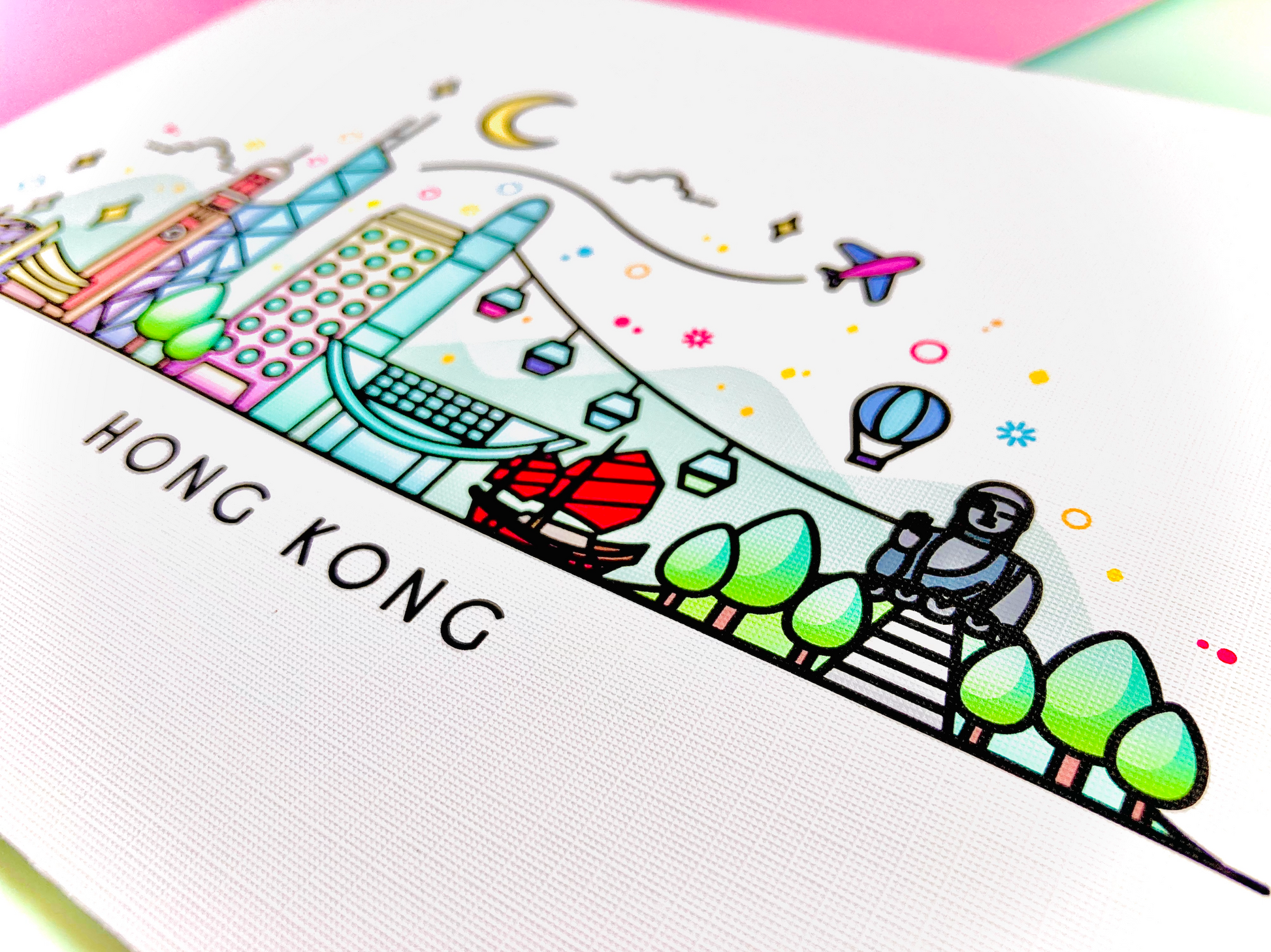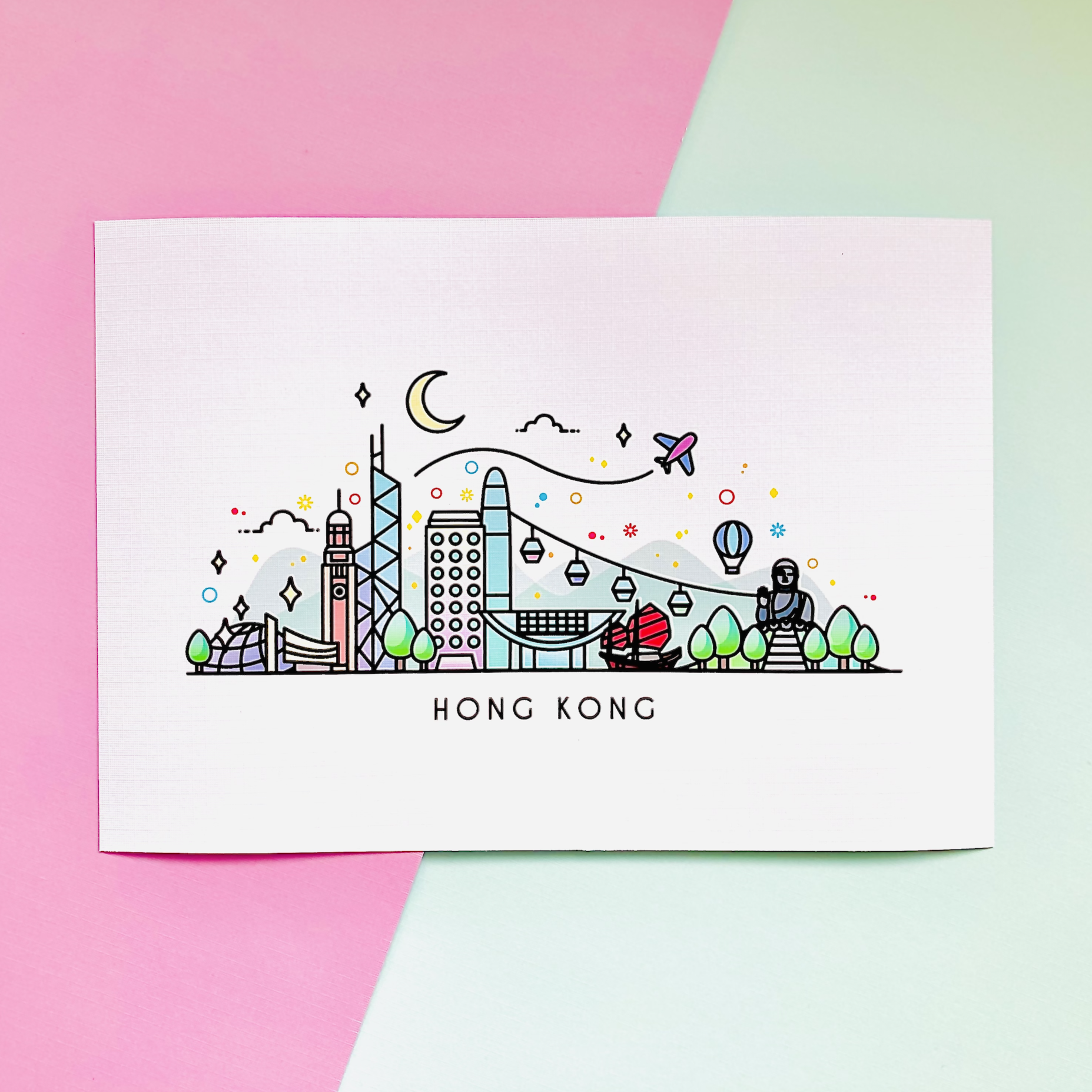 A print of the gorgeous Hong Kong skyline, sitting underneath a beautiful star-lit sky in a simplistic, minimal style by CoconuTacha.