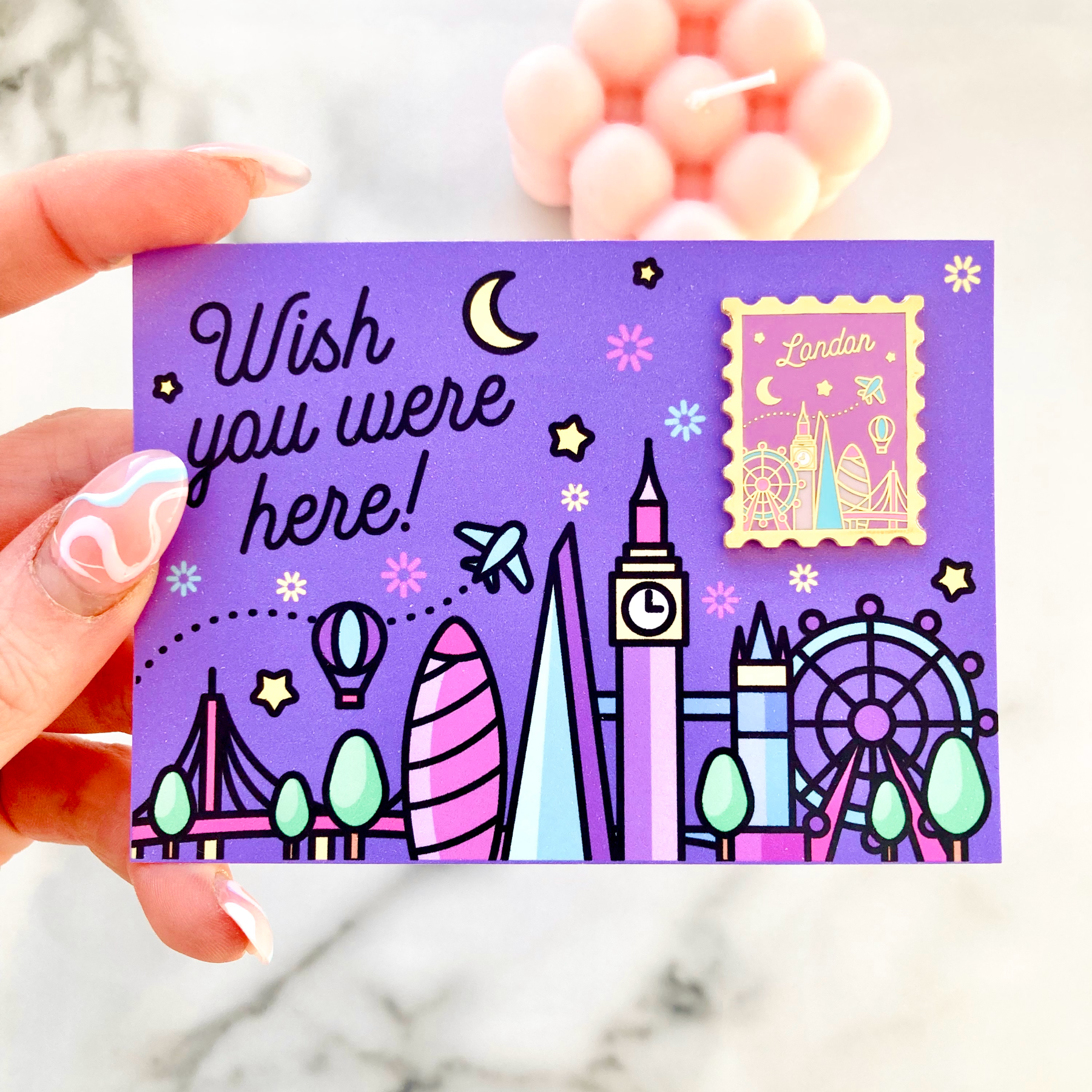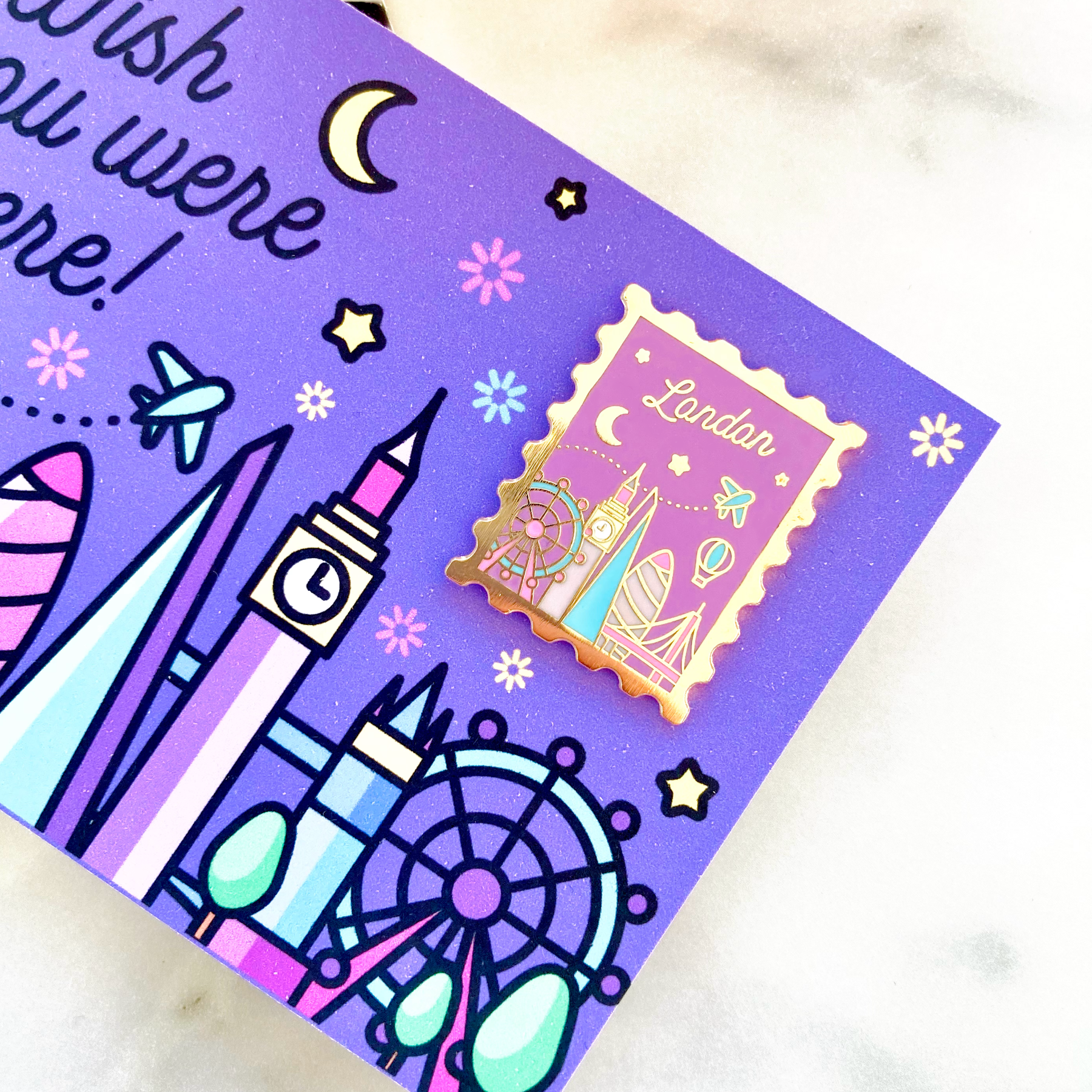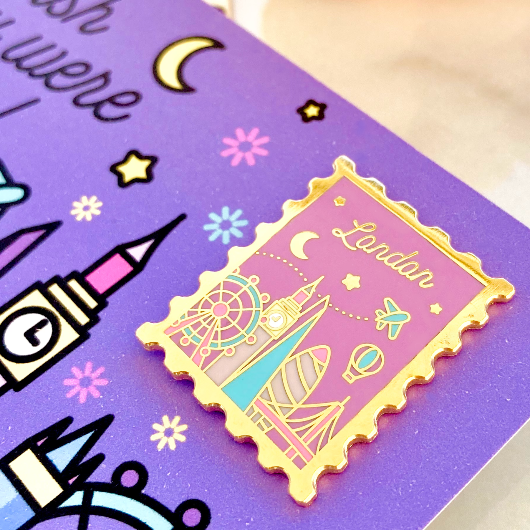 The pin comes complete with a postcard-style backing card stating 'Wish You Were Here!'. Printed on 350gsm, matte-coated card for that extra high-quality feel. Perfect as a gift or as a collectible. We also have Paris, New York and Tokyo pins available in this collection. You can check them out here!