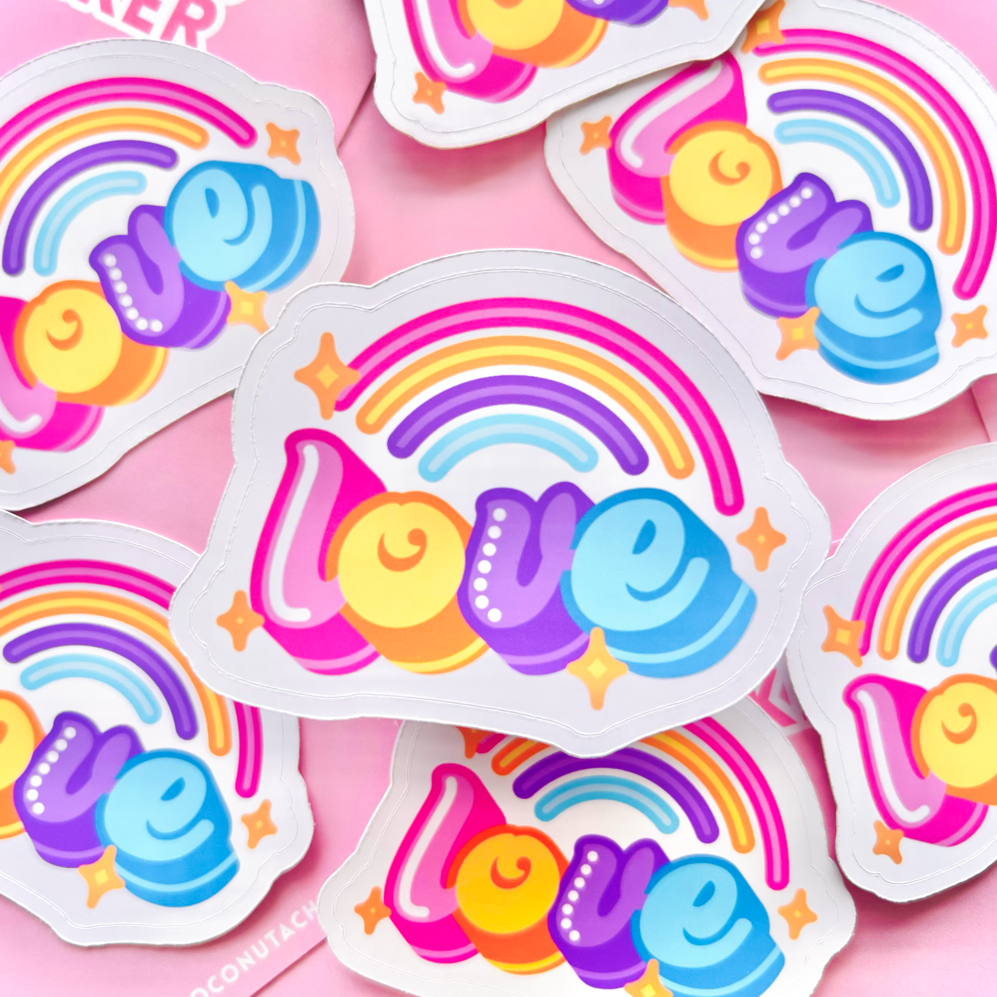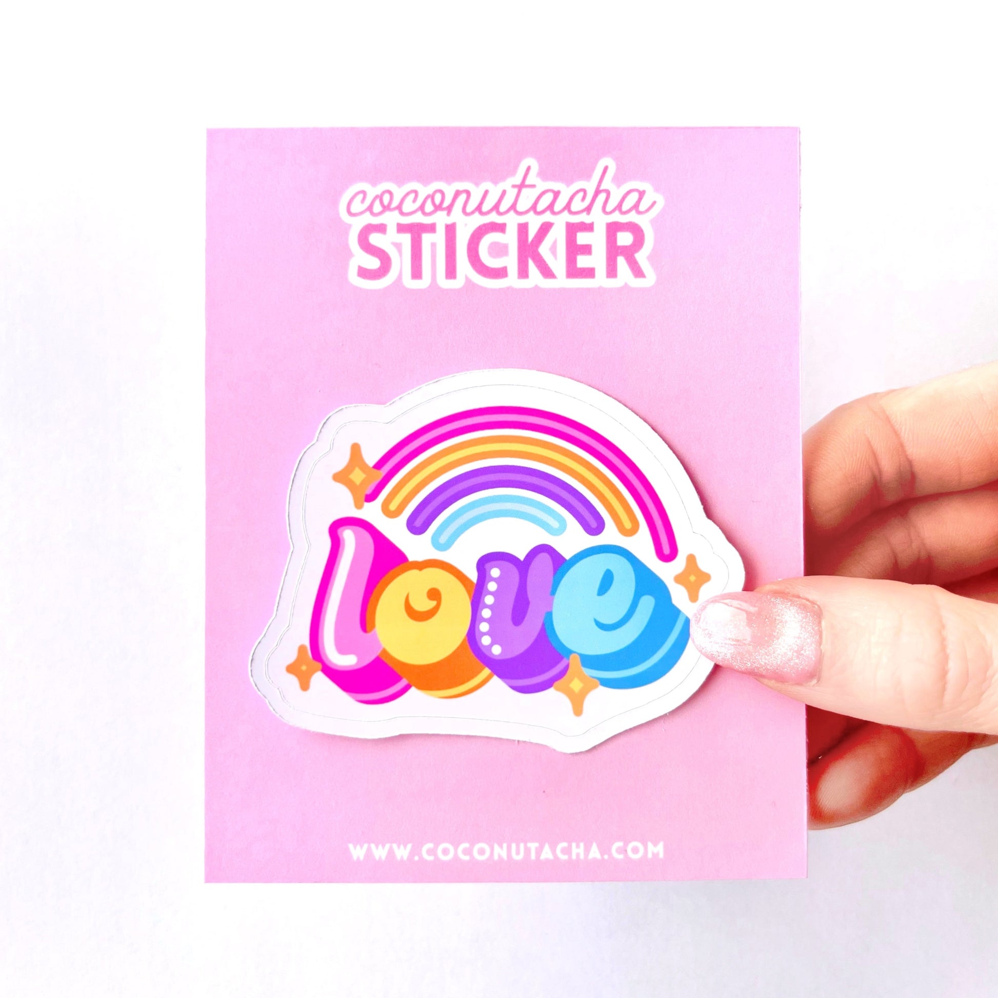 Good vibes only with super bright LOVE sticker! Stick it on your laptop, tablet device or water bottle to add a splash of sunshine to your day.