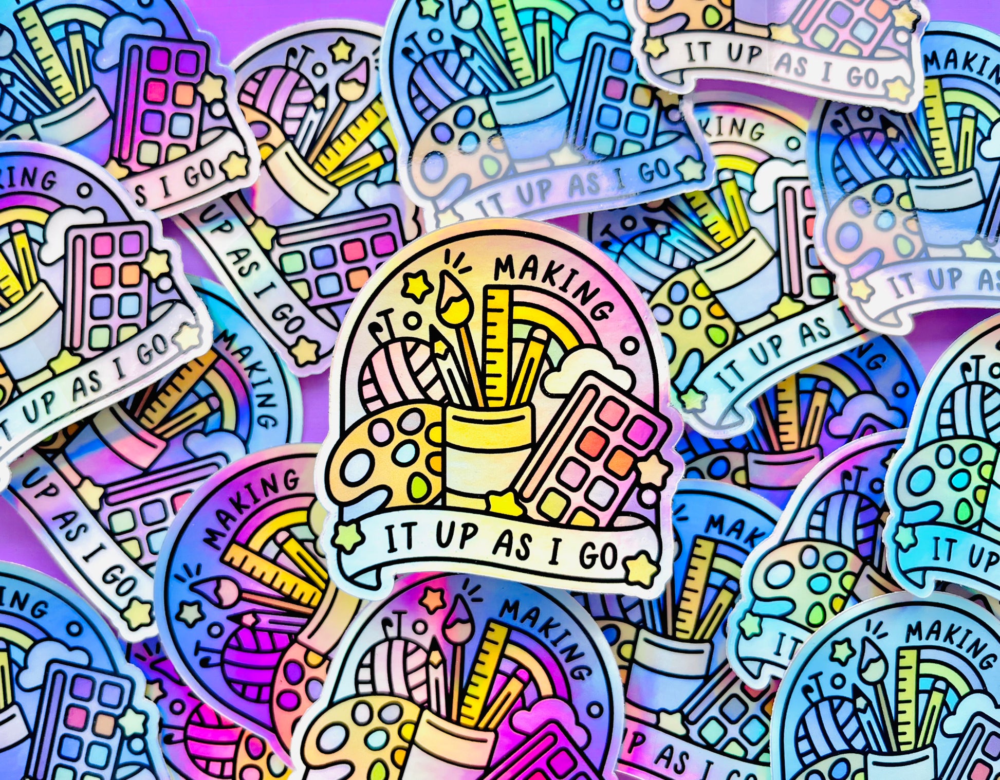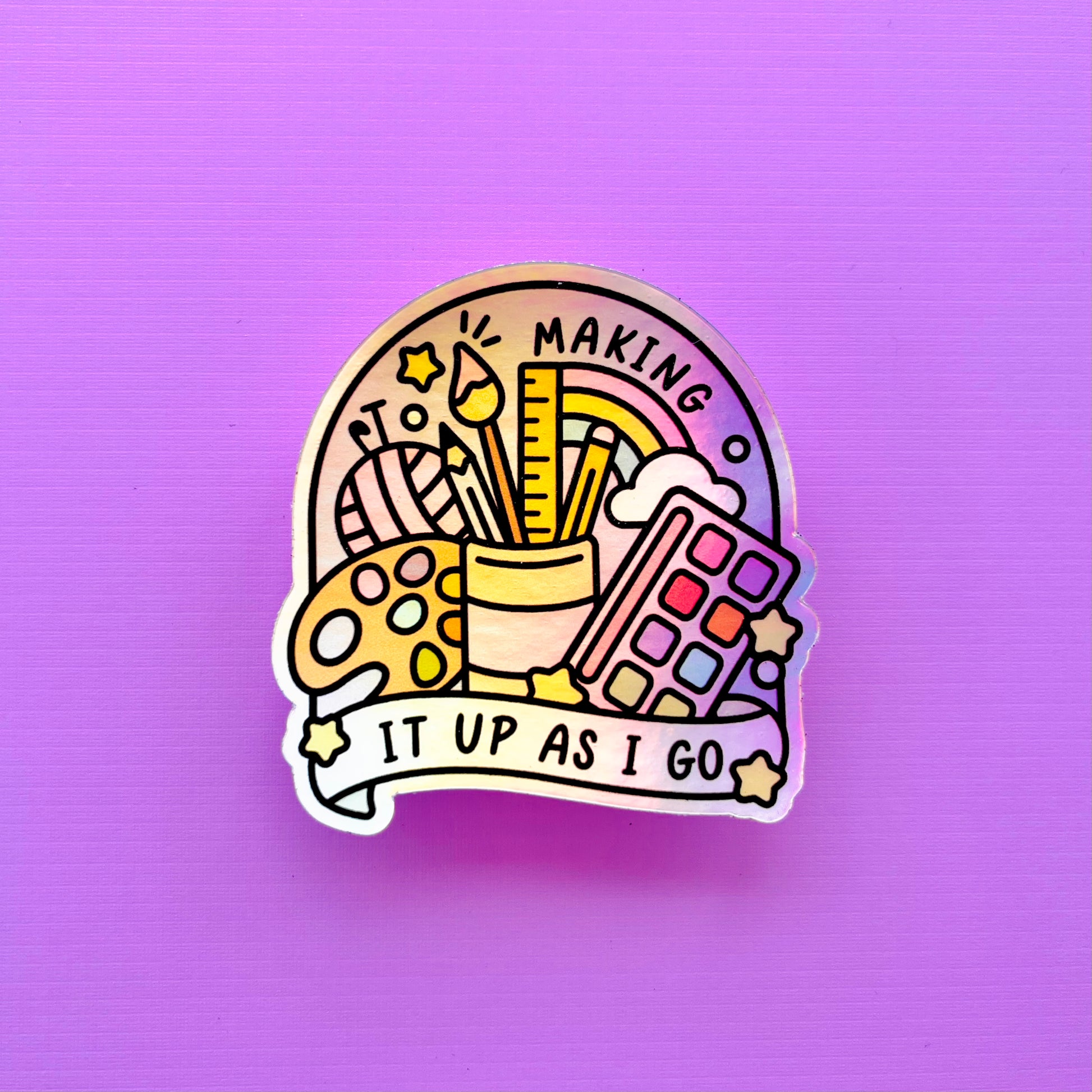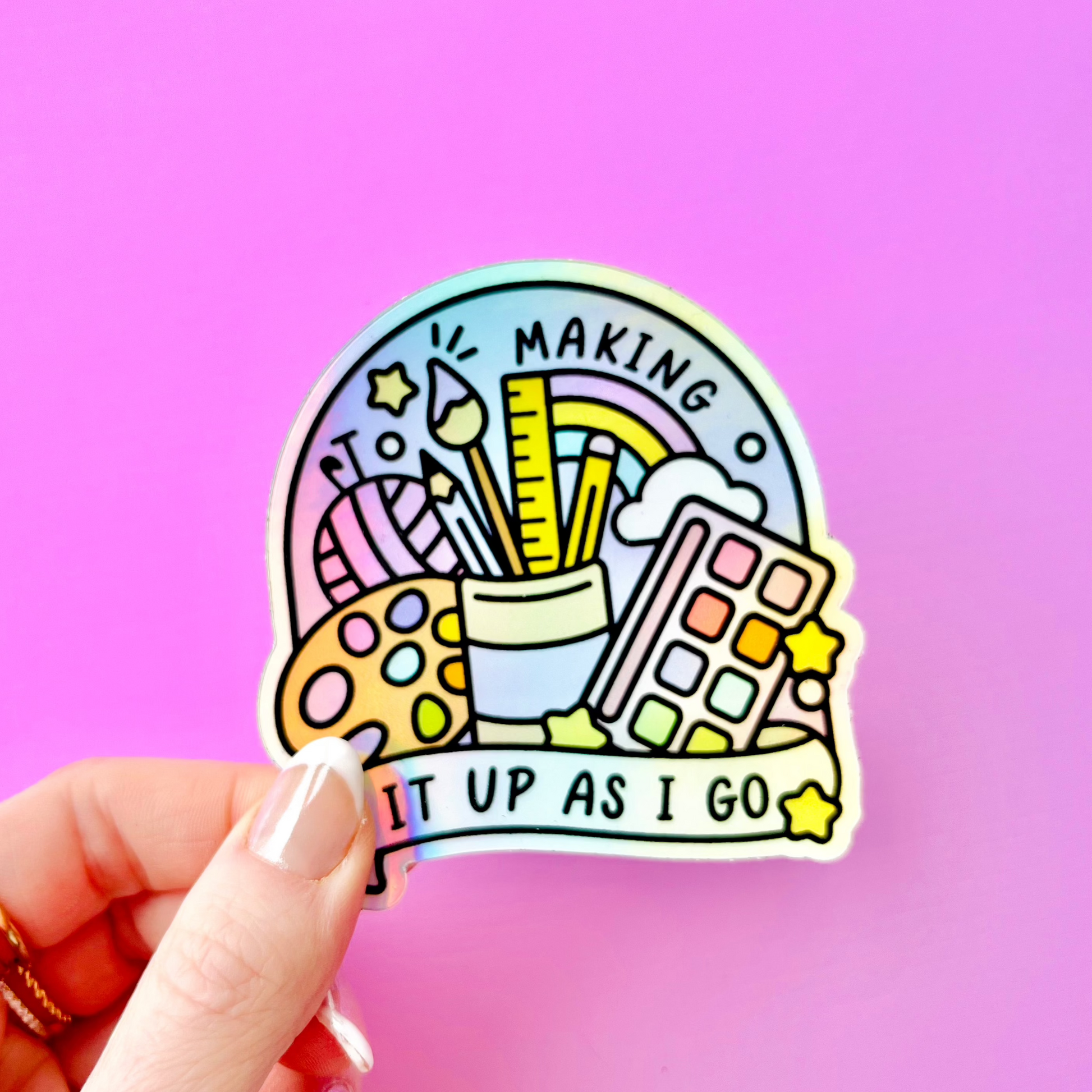 Embrace all things colour and creativity with this holographic sticker!
