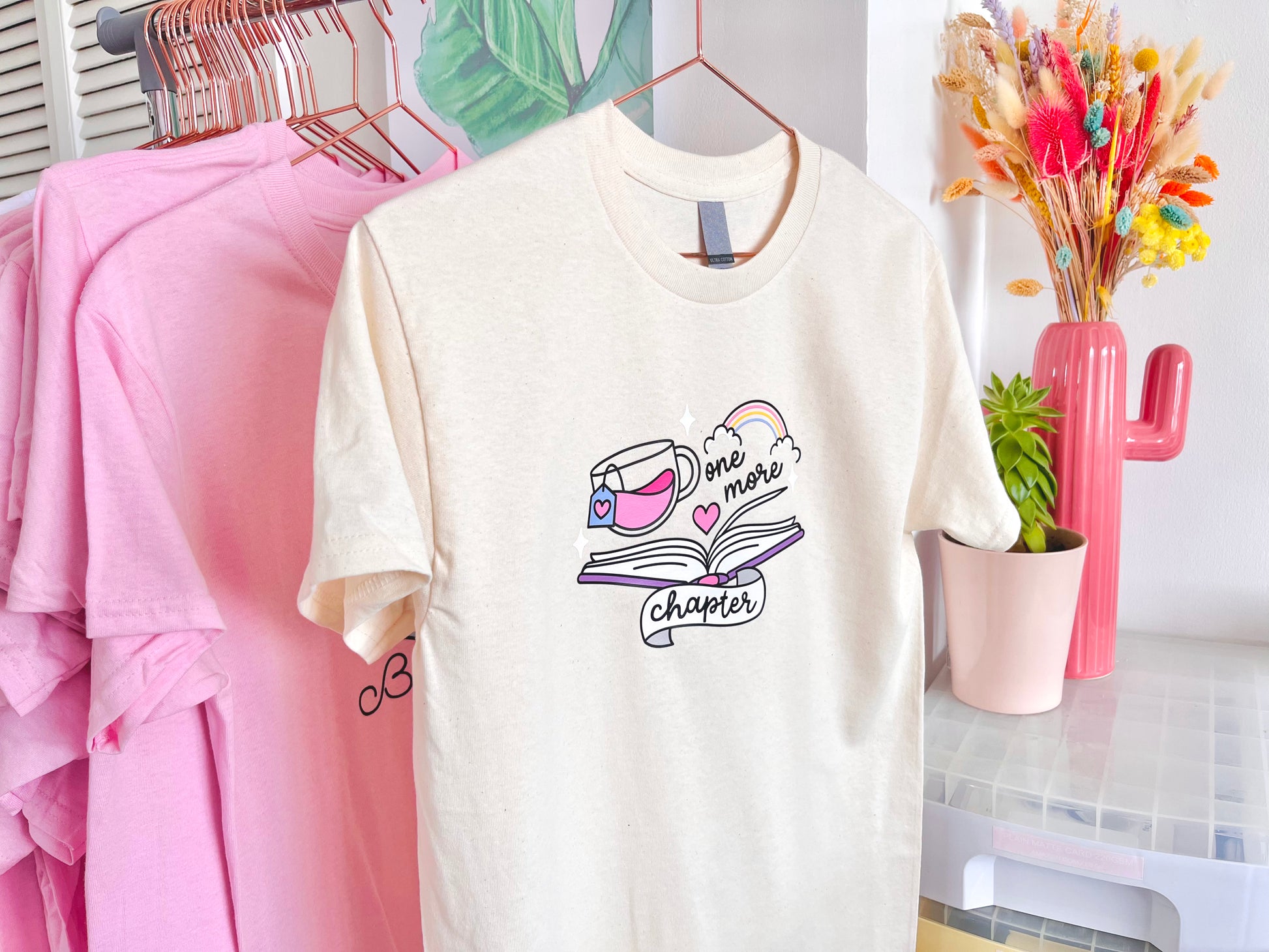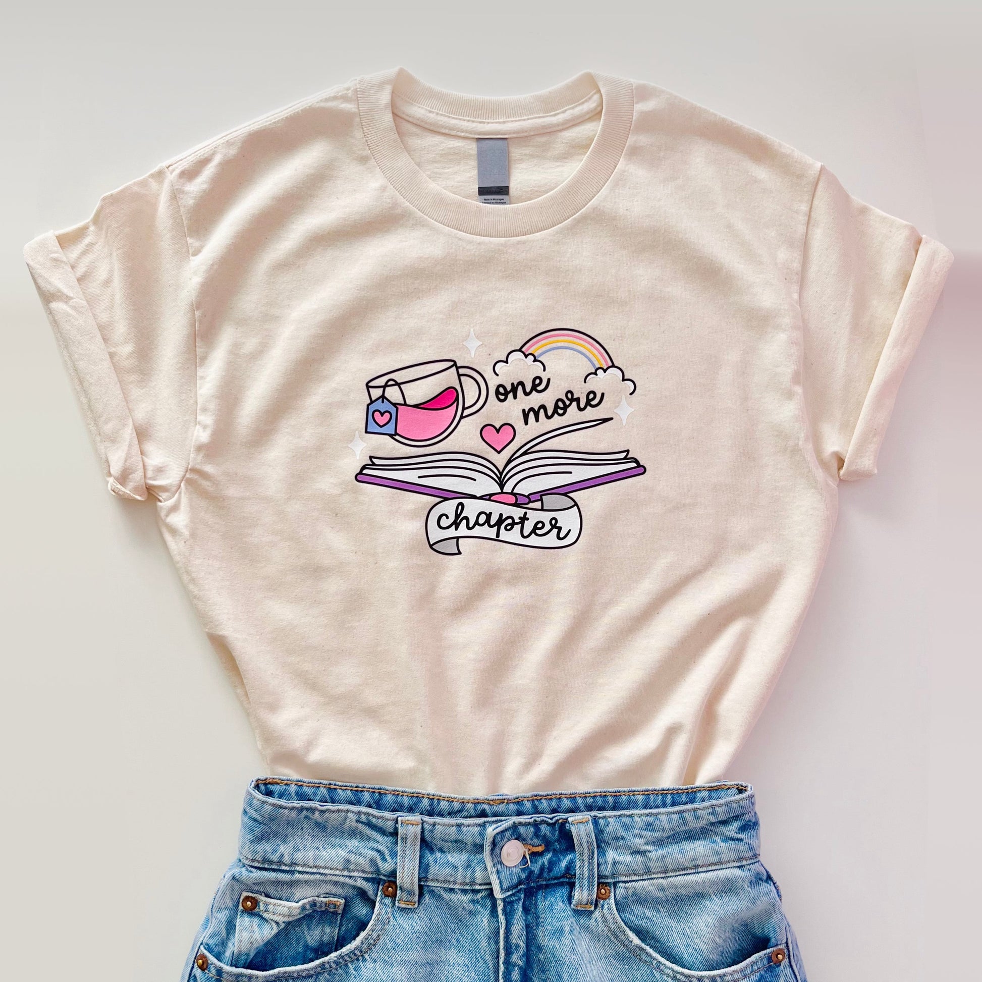 Get ready to cosy up and turn the pages of your favourite book whilst wearing this cute T-Shirt. Crafted in 100% soft cotton in a natural oat colour, this shirt is super cosy! Featuring a printed illustration of a rainbow, your favourite book and hot drink. Perfect for autumn days and nights, curl up and enjoy one more chapter.