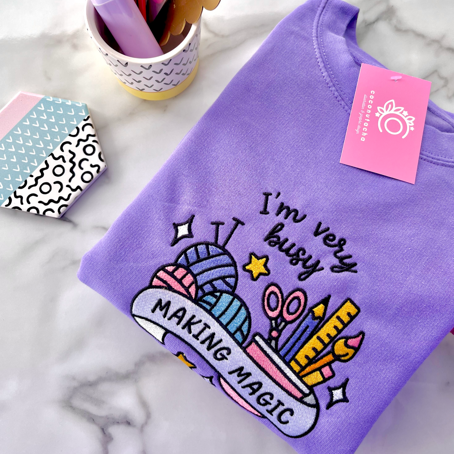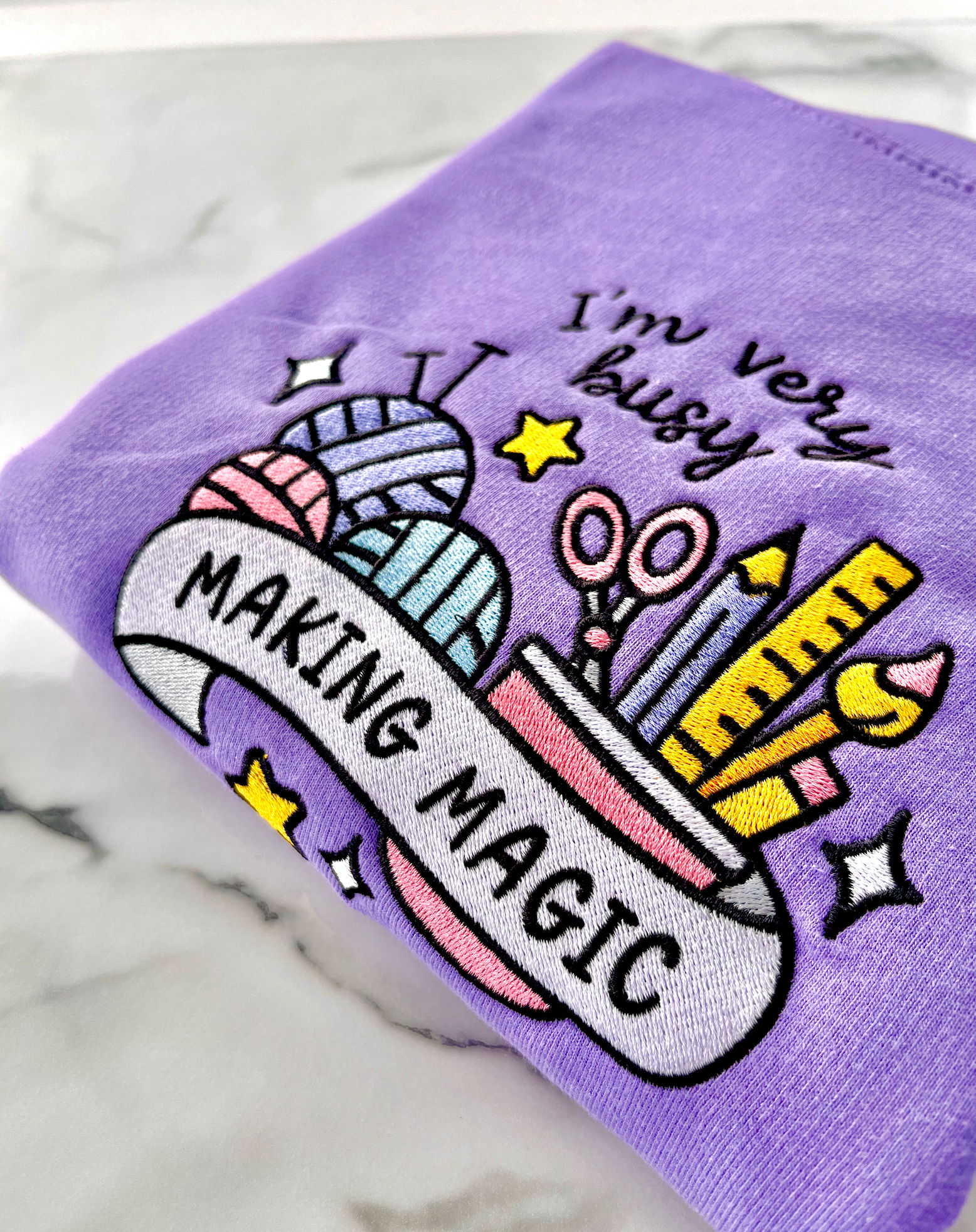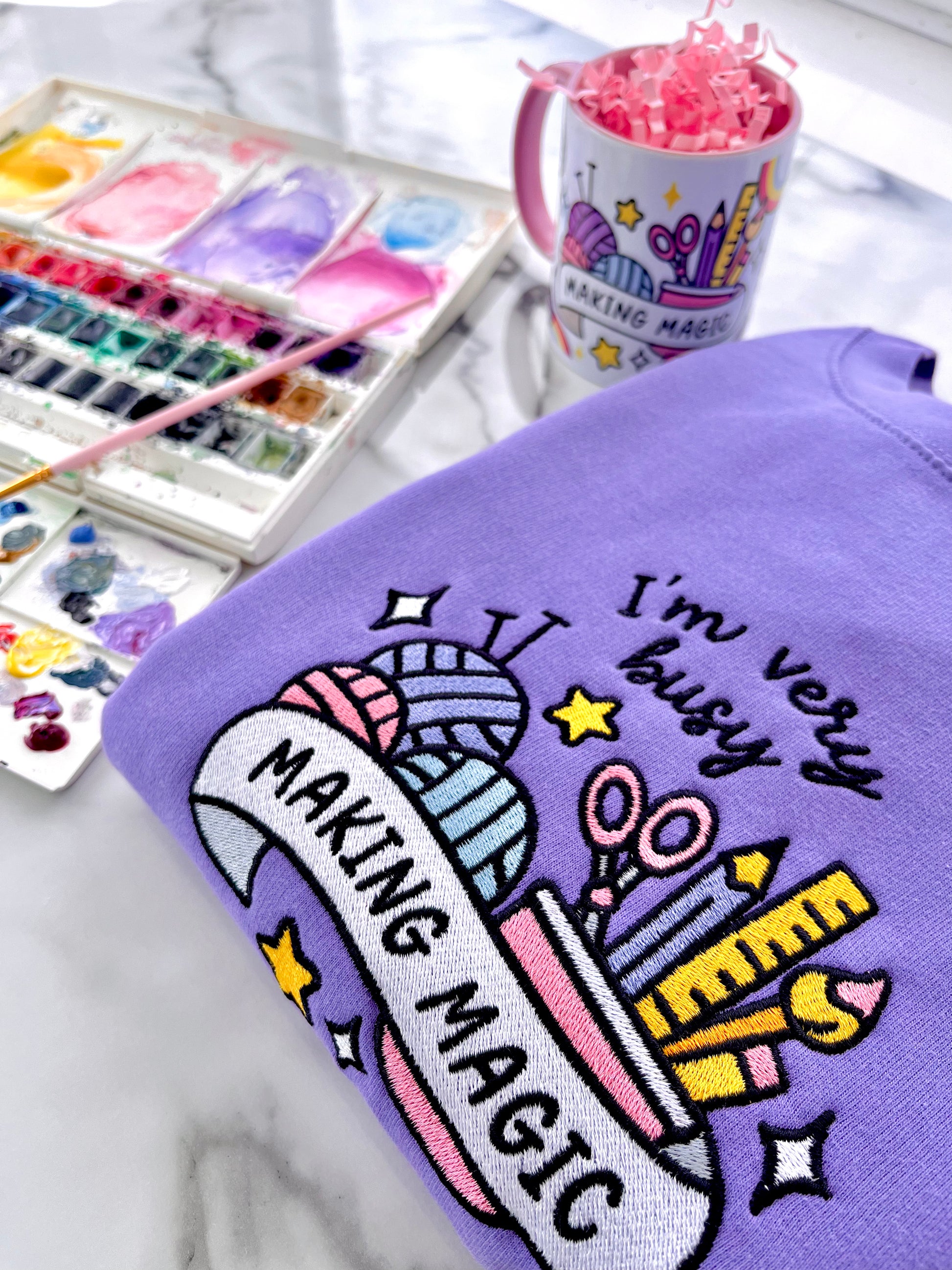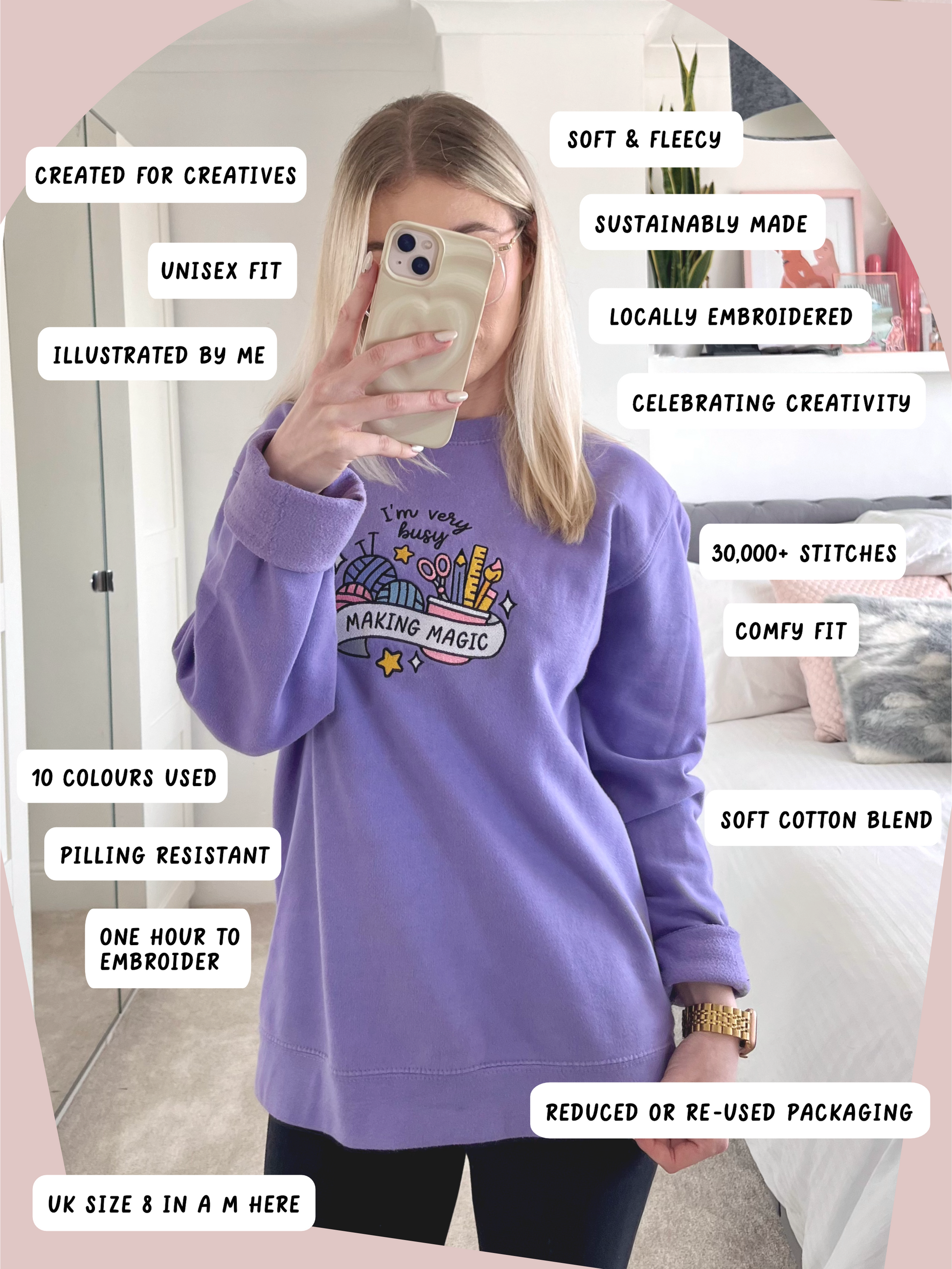 You asked, I made it happen! Introducing the Making Magic embroidered sweater - the cosy lilac companion for all creatives, crafters, and passionate hobbyists 💖