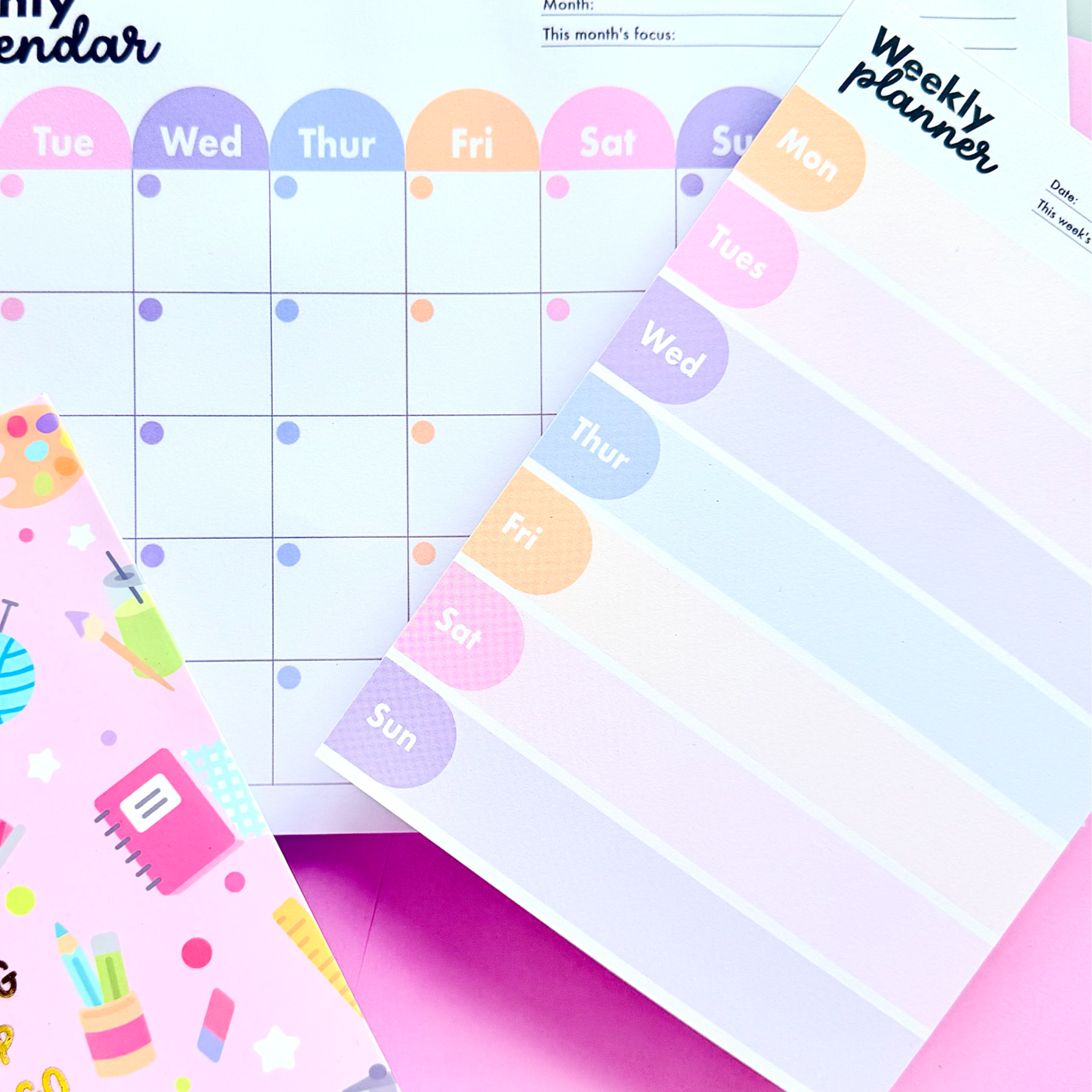 Map out your month, colour-code your chaos and turn it into clarity with the monthly planning desk pad. With 50, undated and tearable pages, you can start whenever you want, be it in September or January! Your desk is about to get a whole lot more colourful 💖💜💛