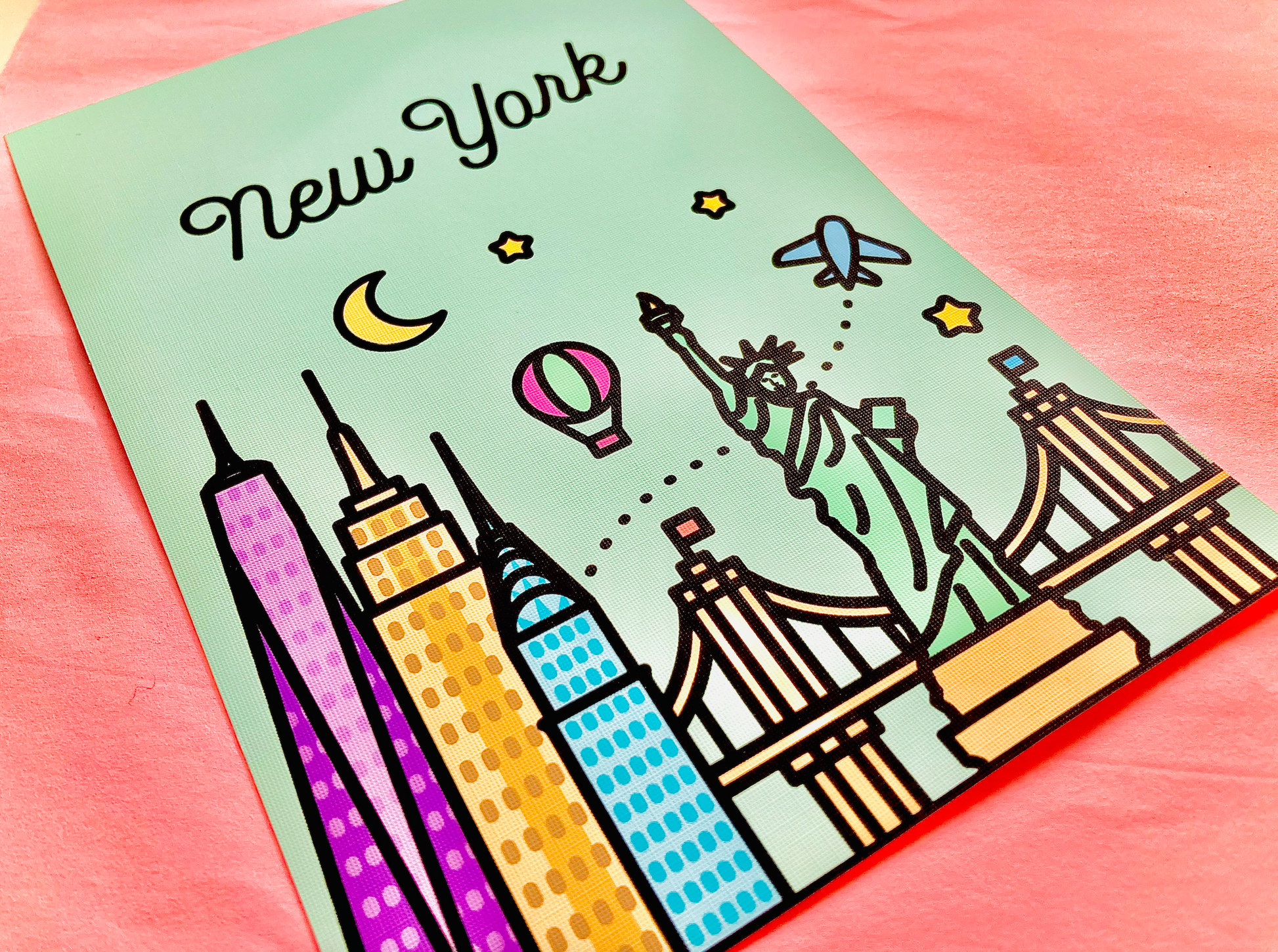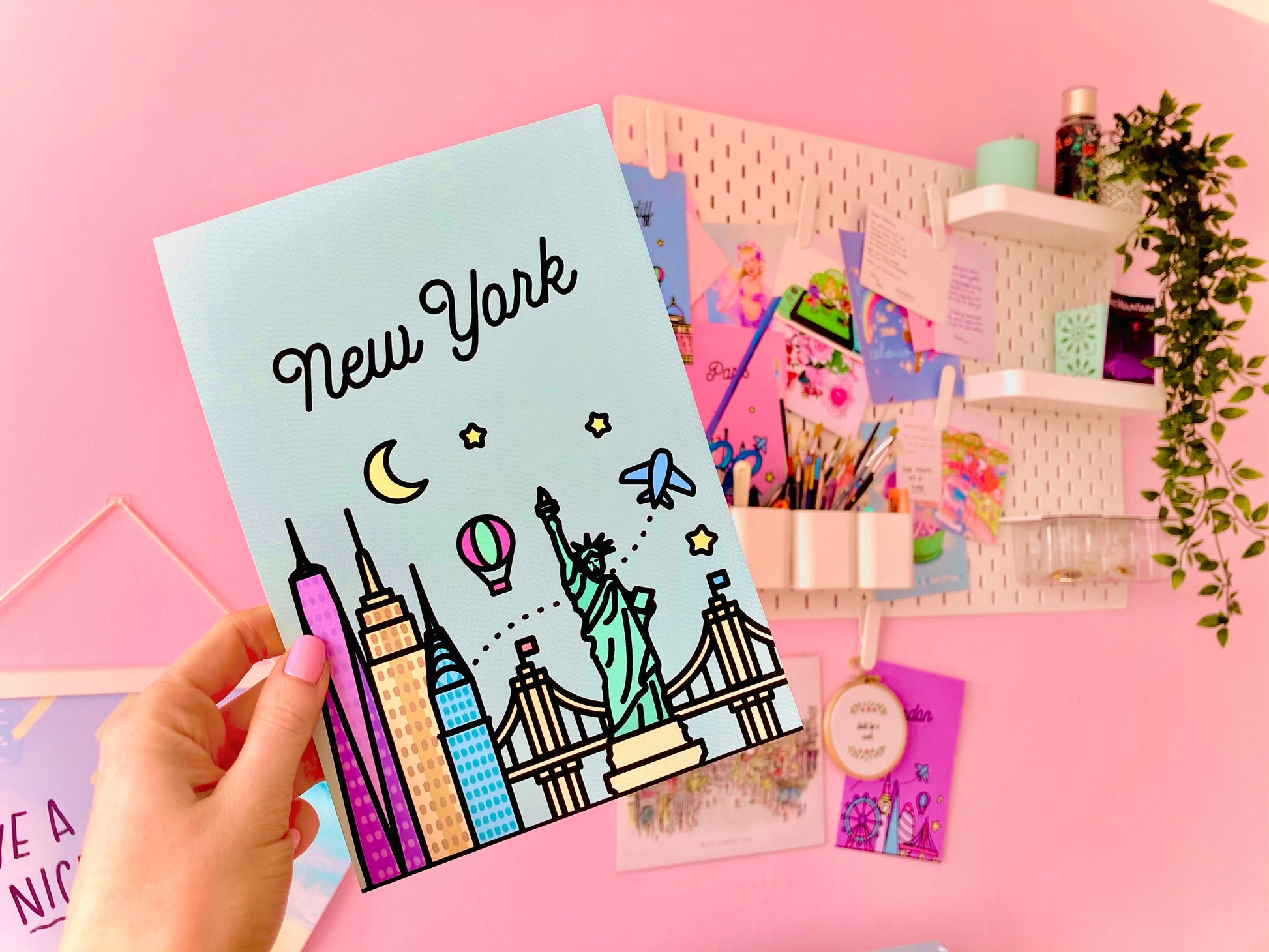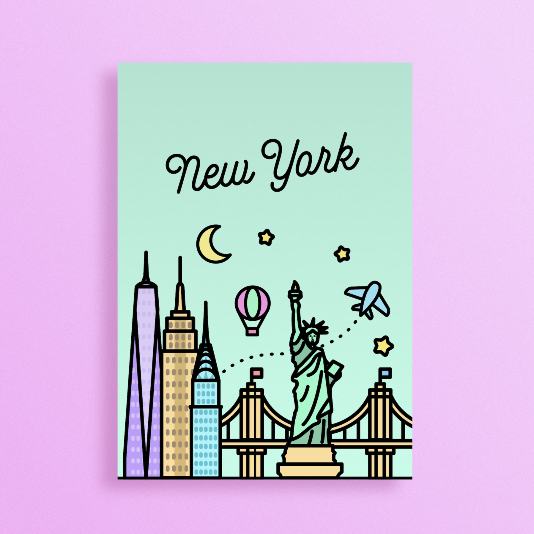 A print of the gorgeous New York skyline, sitting underneath a beautiful star-lit sky in a simplistic, minimal style by CoconuTacha.