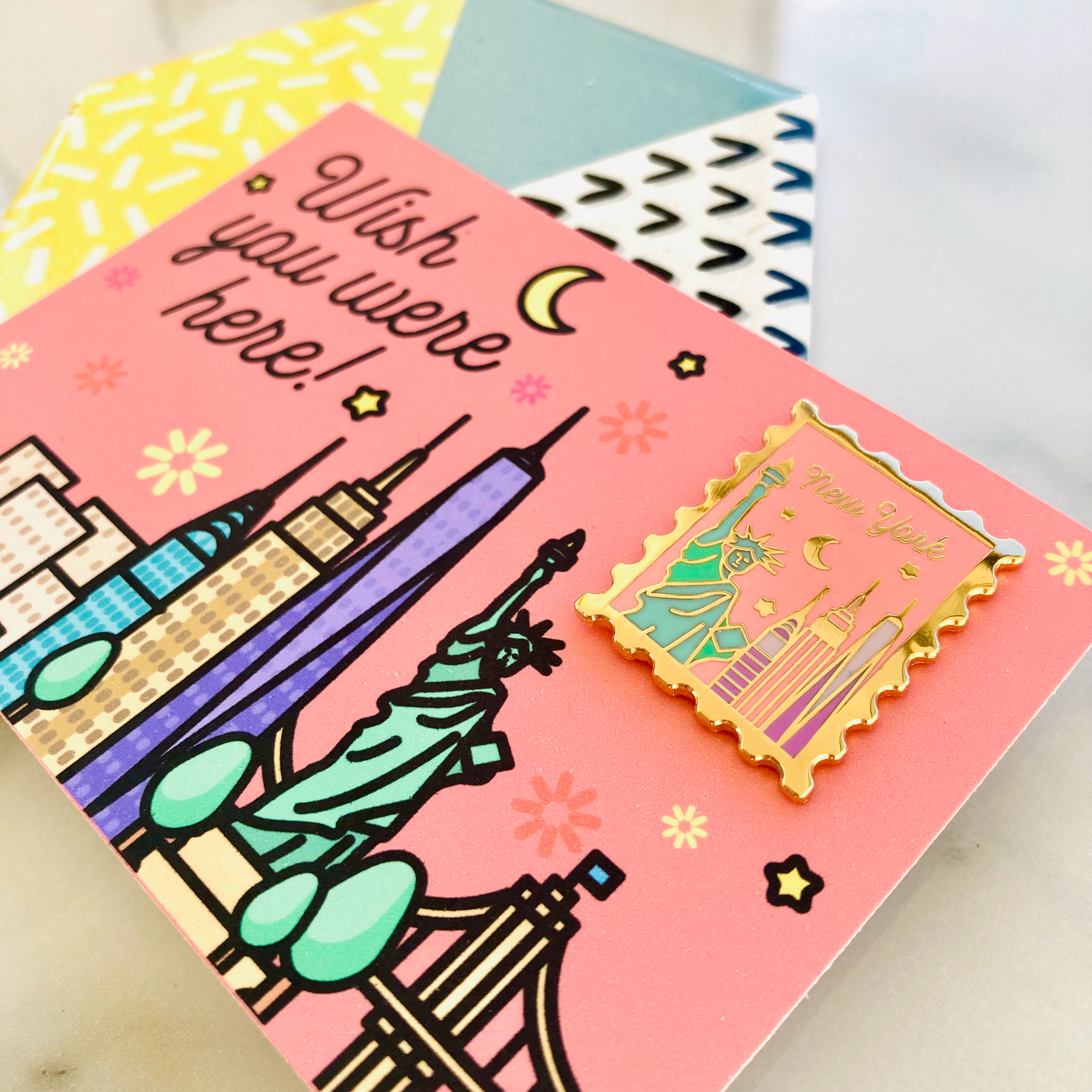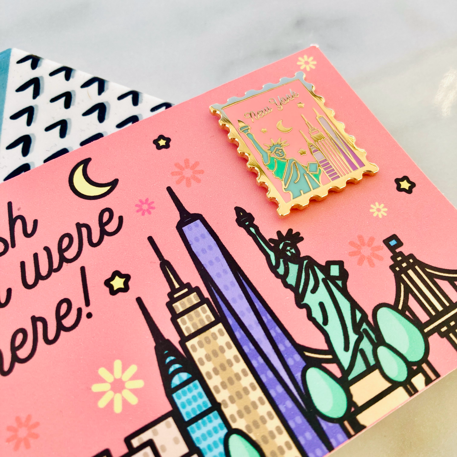 New York Wish You Were Here Gold-Plated Enamel Pin