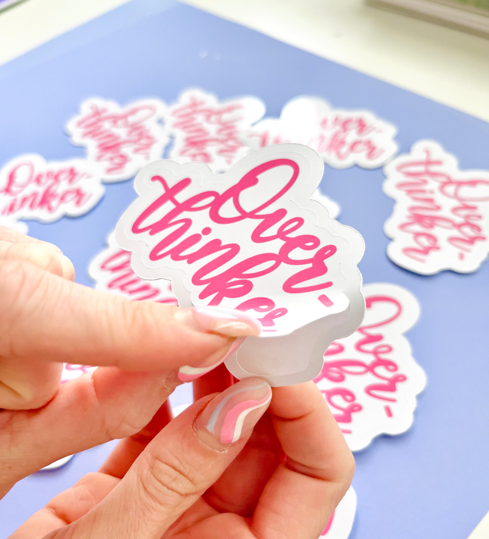 Overthinking central? Let this sticker be a reminder not to overthink, get outside your head and get things done.
