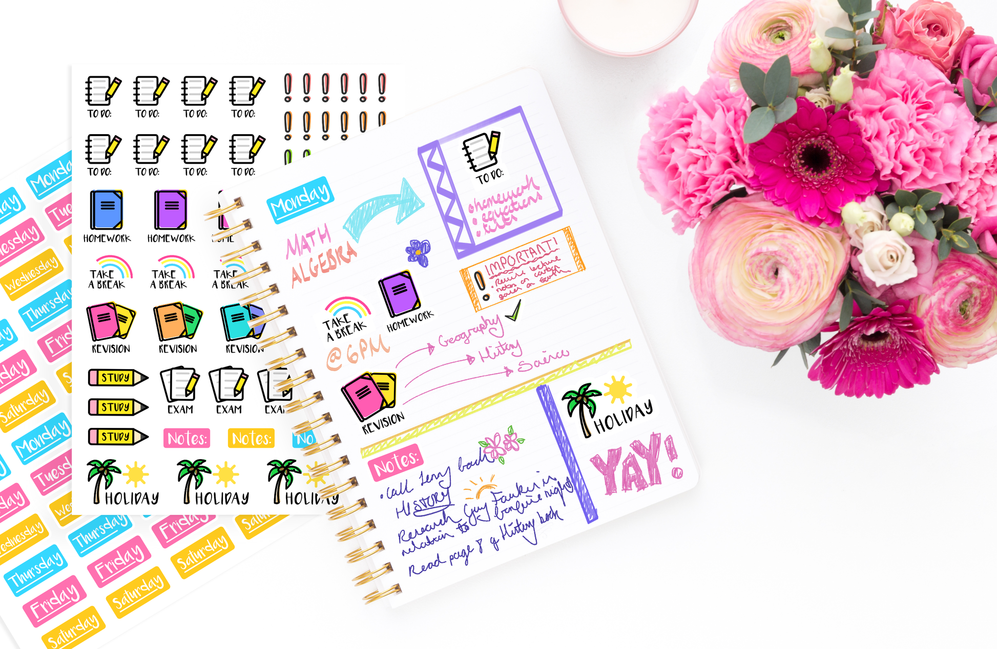 Complete with to-do list stickers, homework, revision, exams, days of the week and more.