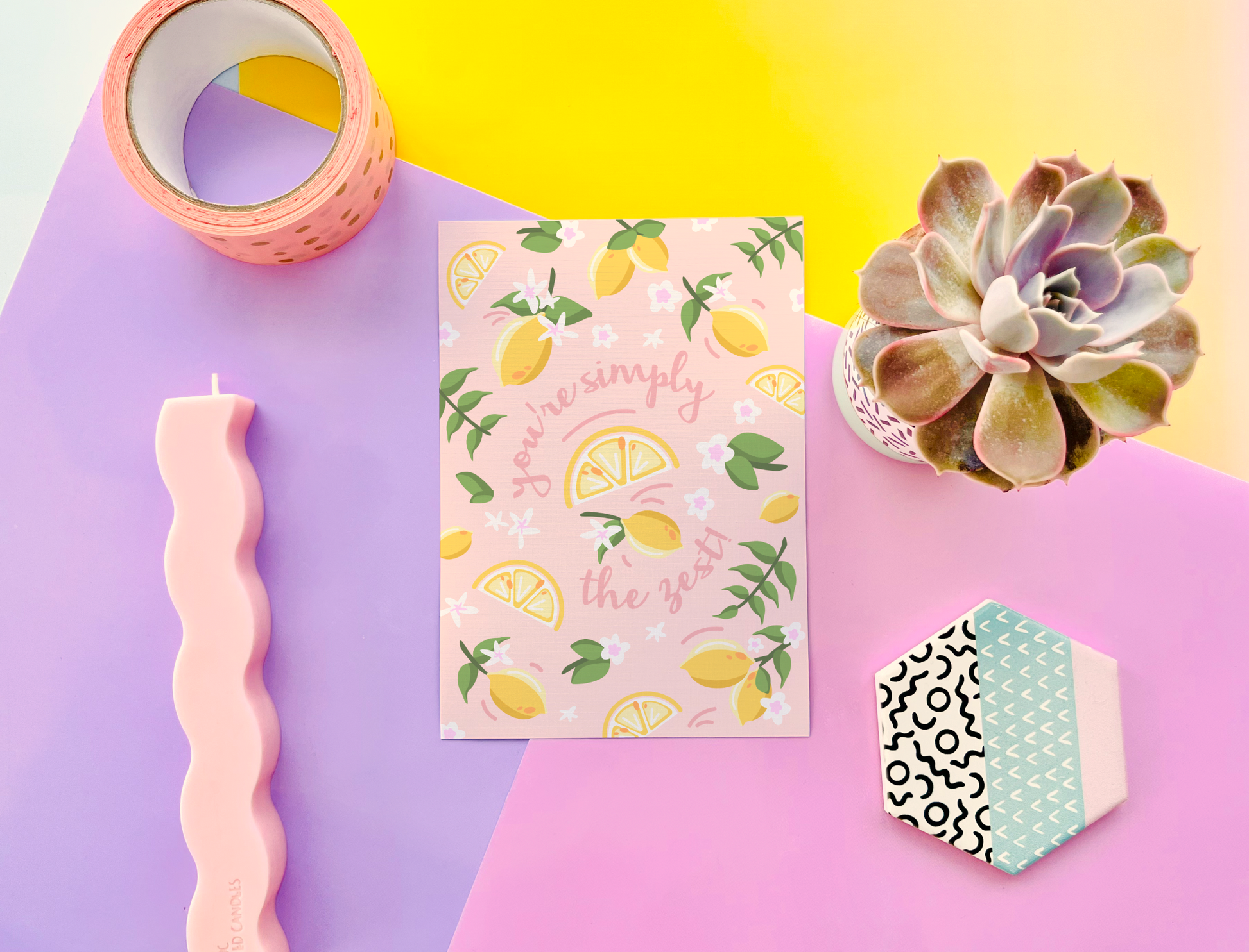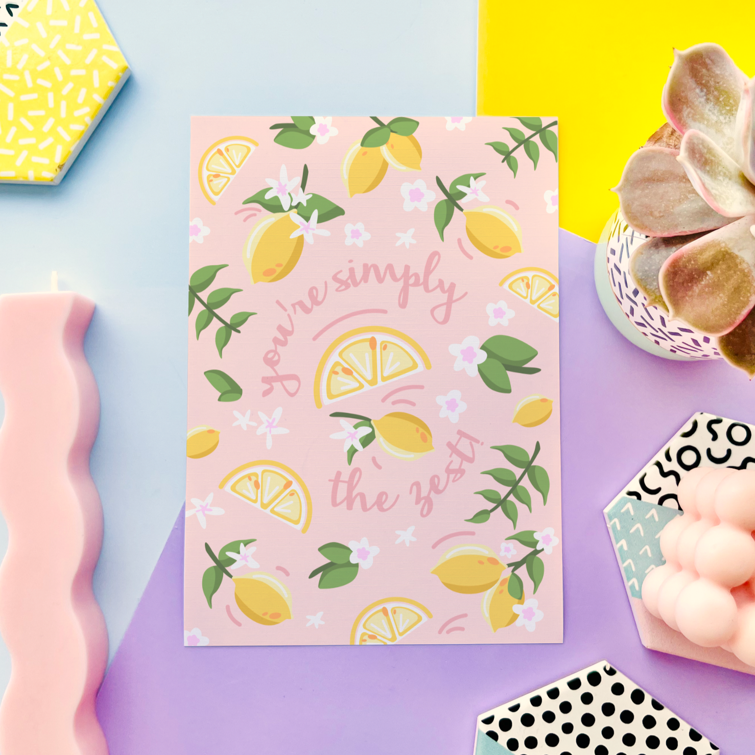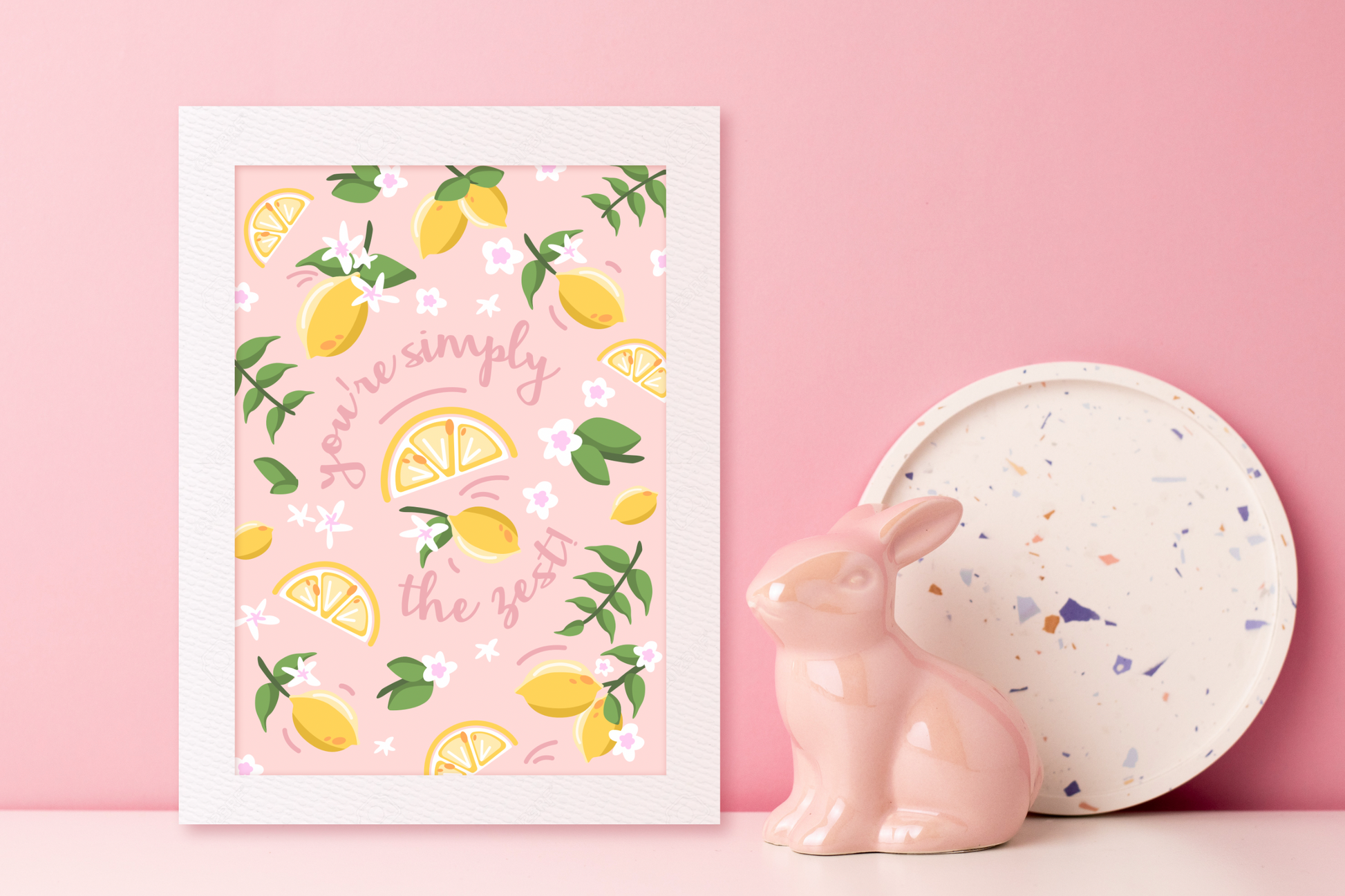 Remind yourself or a friend that you are the very best- I mean, zest! Designed with cute pastel pinks and a gorgeous tropical lemon pattern. You can almost smell the sweet freshness just by gazing at this print. Perfect for brightening up your dining space, kitchen or bedroom.