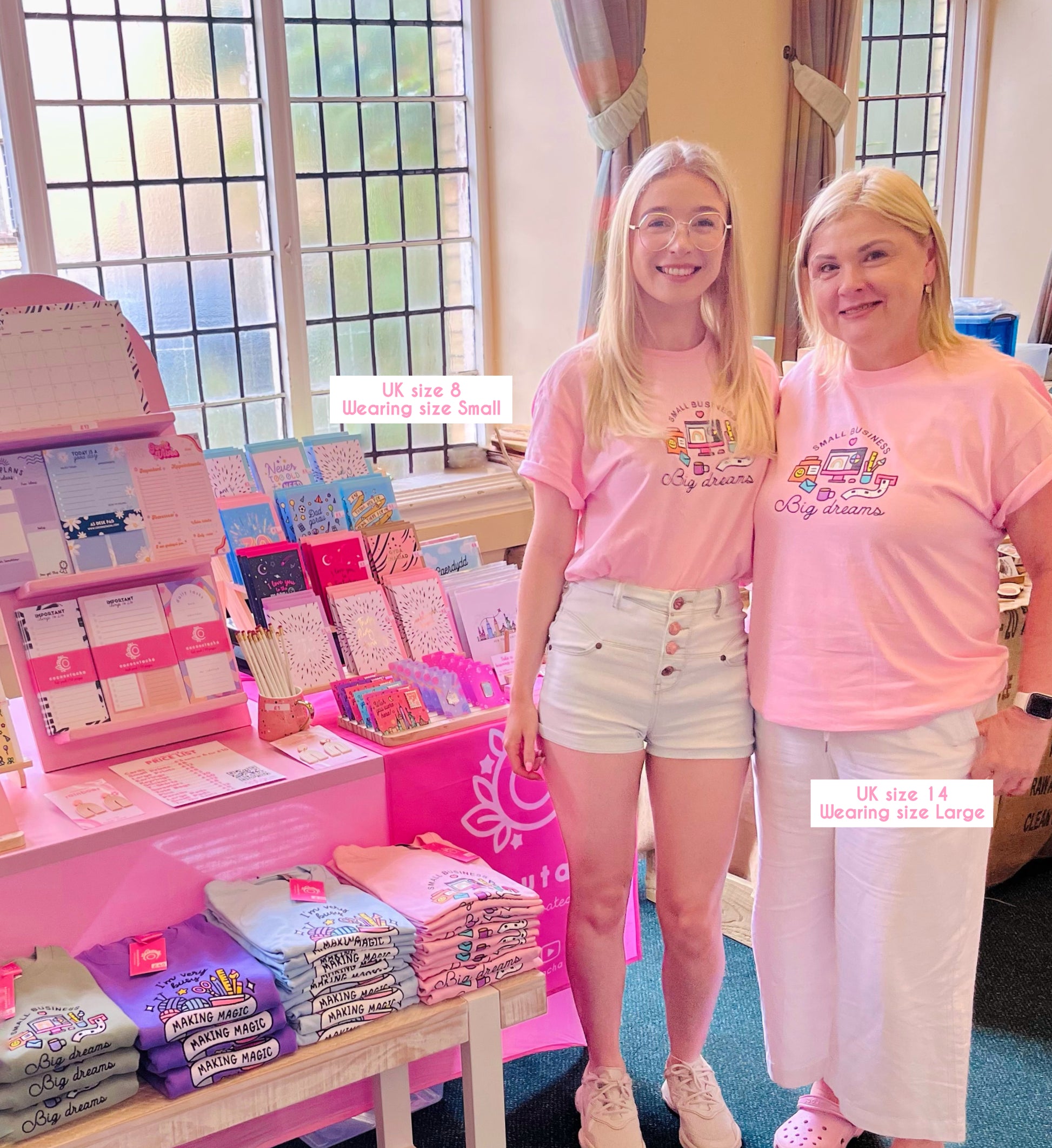 Love this t-shirt. Purchased when launched and its so comfy. Sizing is very generous which makes them the perfect top to work in with plenty of room. Perfect for shouting that your a small business owner 😁