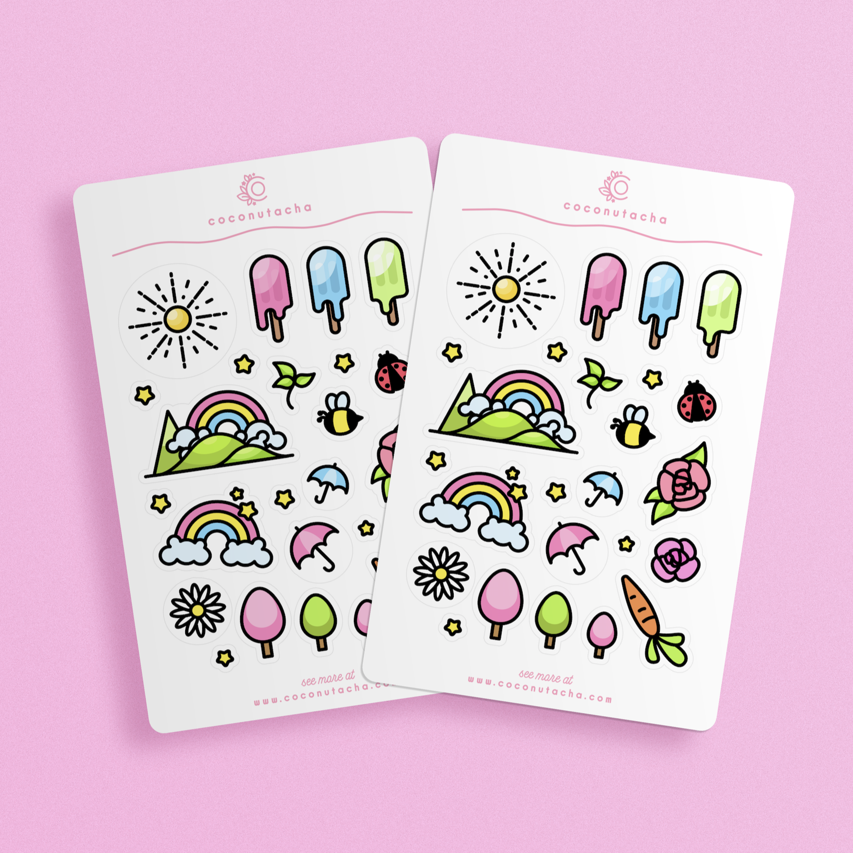This listing is for 2 sheets of planner stickers inspired by everything great about Spring.