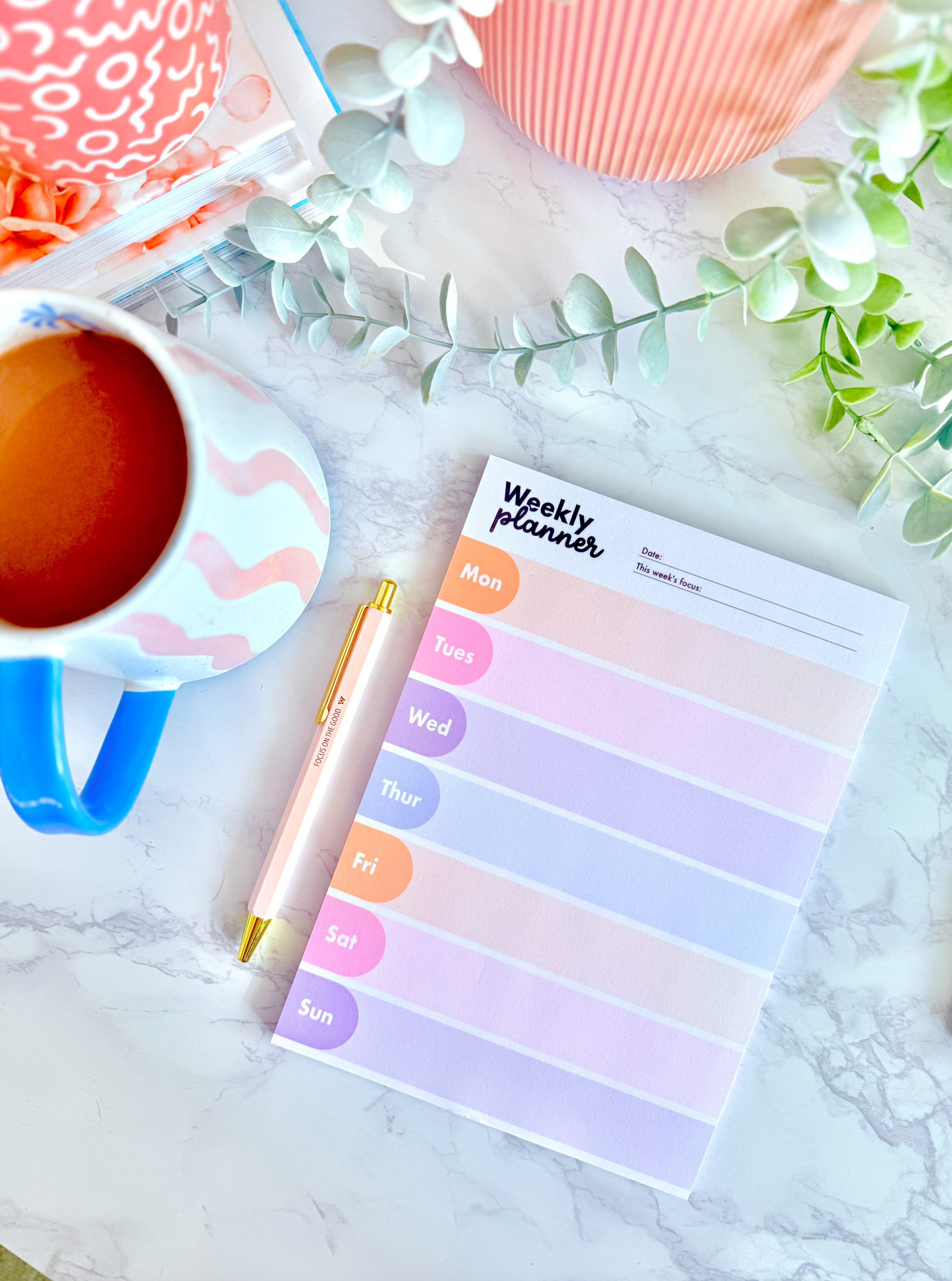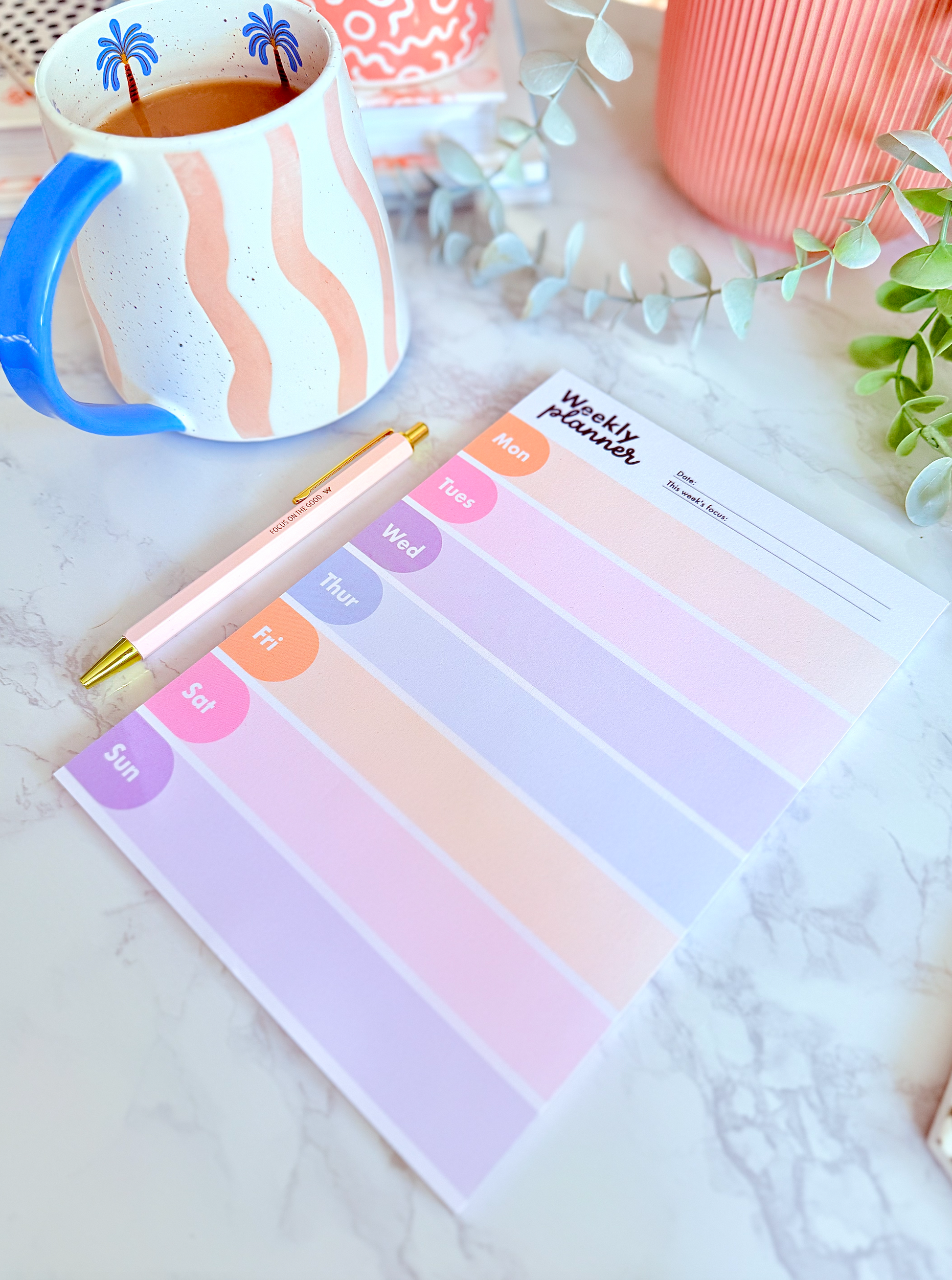Colour-code your chaos and turn it into clarity with the weekly planning desk pad. With 50, undated and tearable pages, you can start whenever you want, be it in September or January! Your desk is about to get a whole lot more colourful 💖💜💛